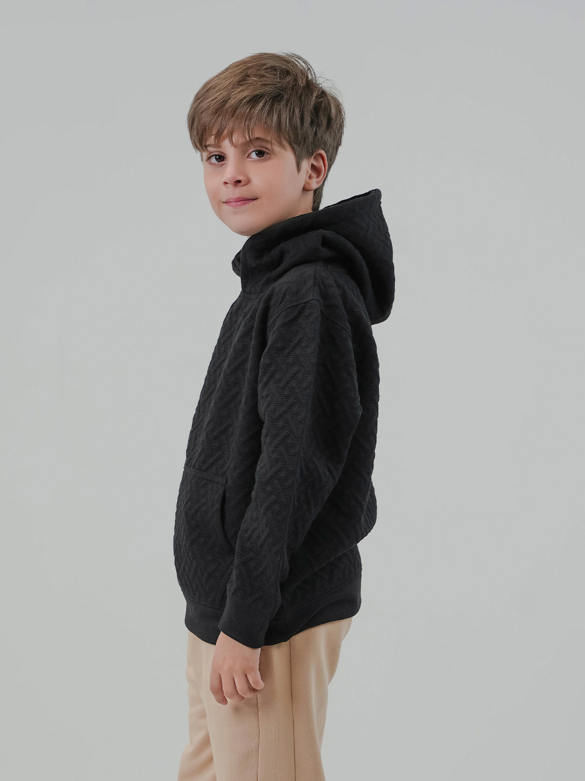 Textured Regular Fit Fleece Hoodie
