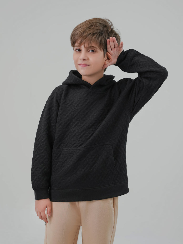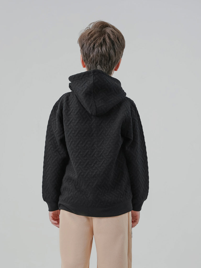 This boys' fleece hoodie features a unique textured design for added style and warmth. Made with soft, cozy fabric, it offers a comfortable fit that’s perfect for school, play, or everyday wear. Stylish, snug, and easy to wear all day.