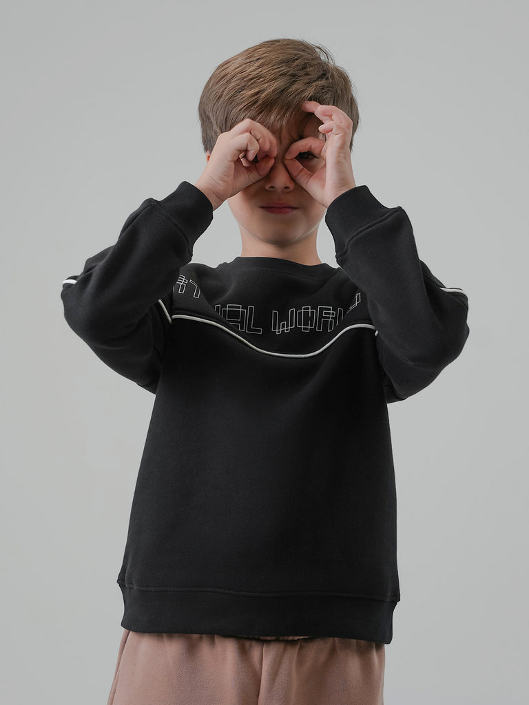 This fleece sweatshirt with cut & sew raglan sleeves brings a sporty and stylish look. Made from soft, warm fabric, it offers all-day comfort with a modern design. Perfect for school, play, or casual wear — comfy, cool, and easy to move in.