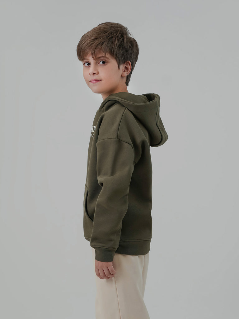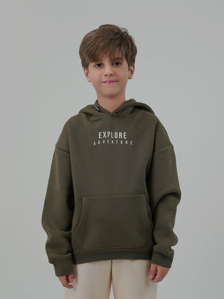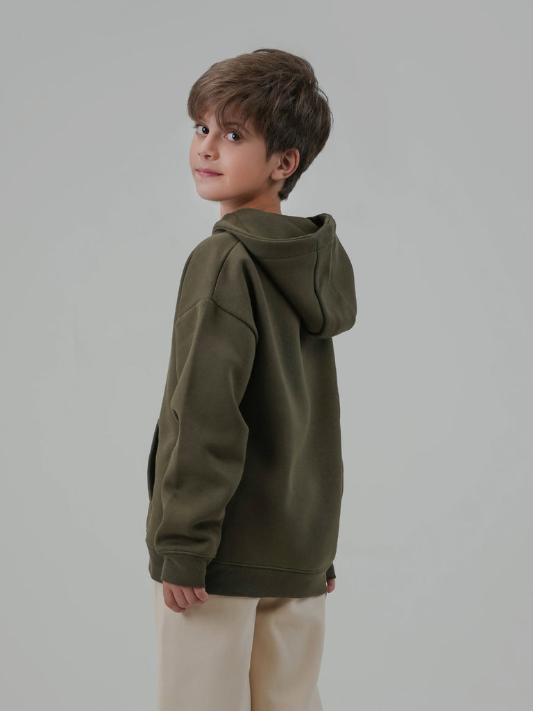 This boys' fleece hoodie with drop shoulders is soft, warm, and perfect for everyday wear. Designed for a relaxed fit, it offers both comfort and style.