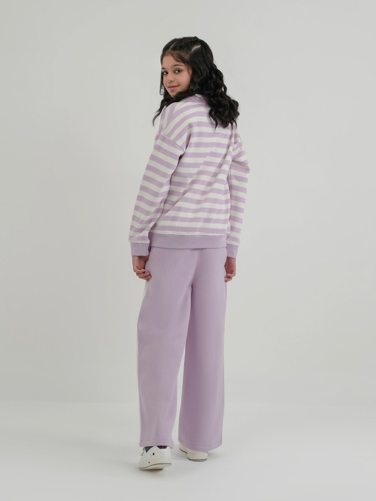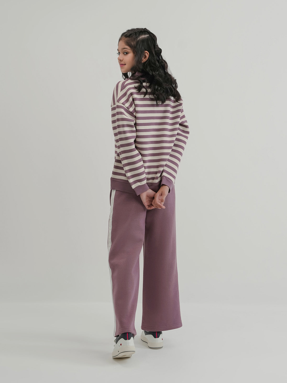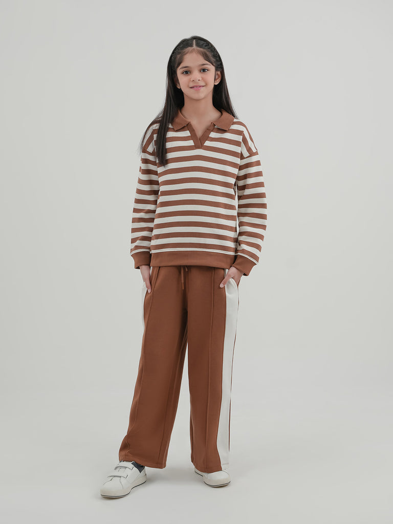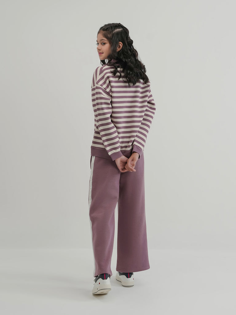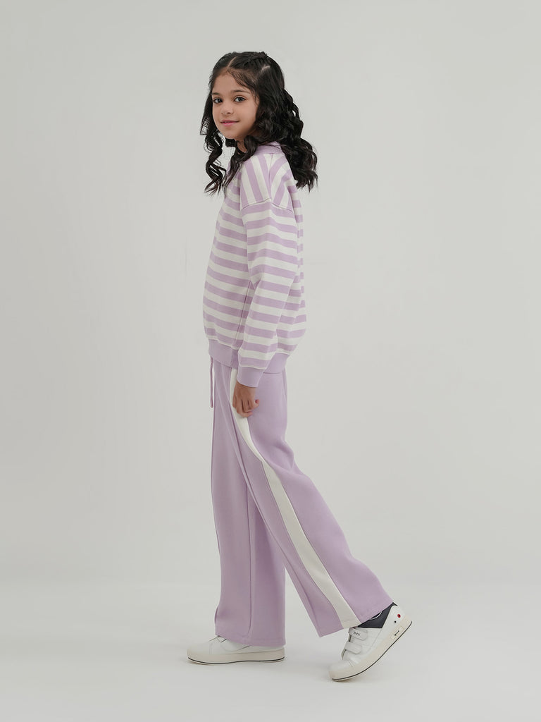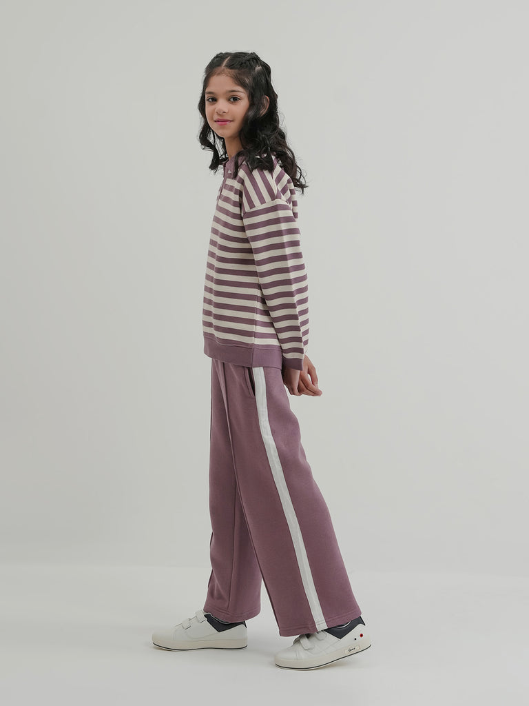 Keep her cozy and stylish with this girls' fleece tracksuit. Designed in a basic cut with drop shoulders for a relaxed fit, it's perfect for everyday wear. The soft fleece fabric provides warmth and comfort, making it ideal for playtime, lounging, or casual outings.