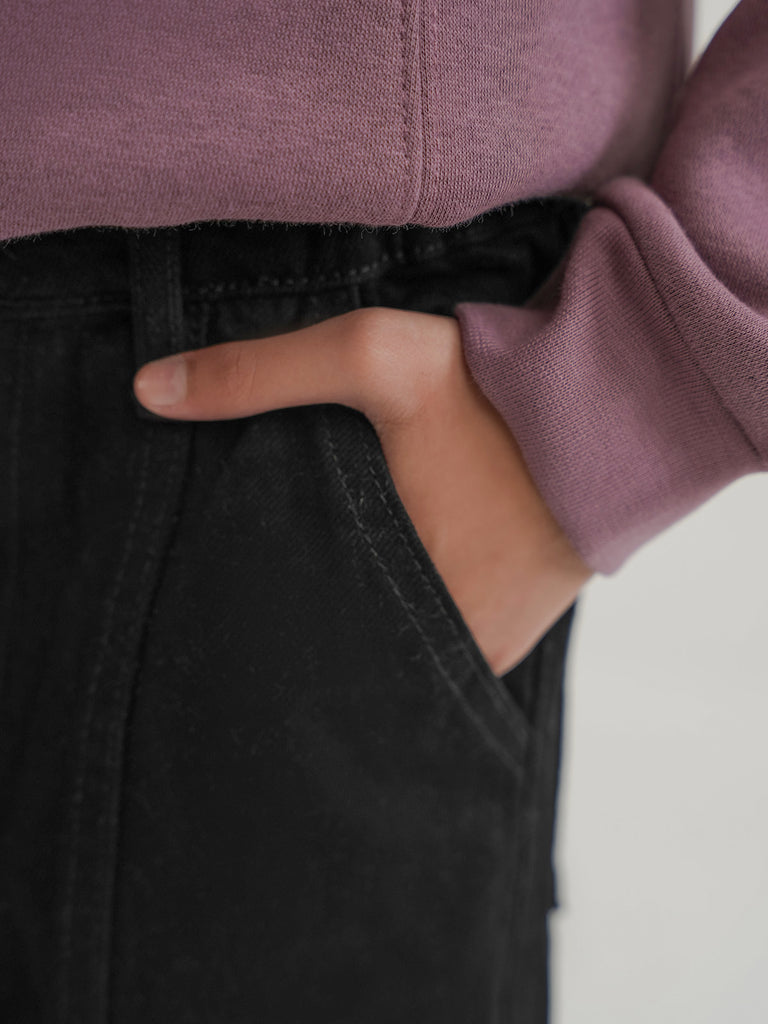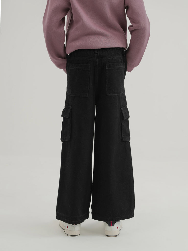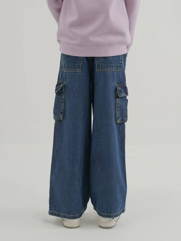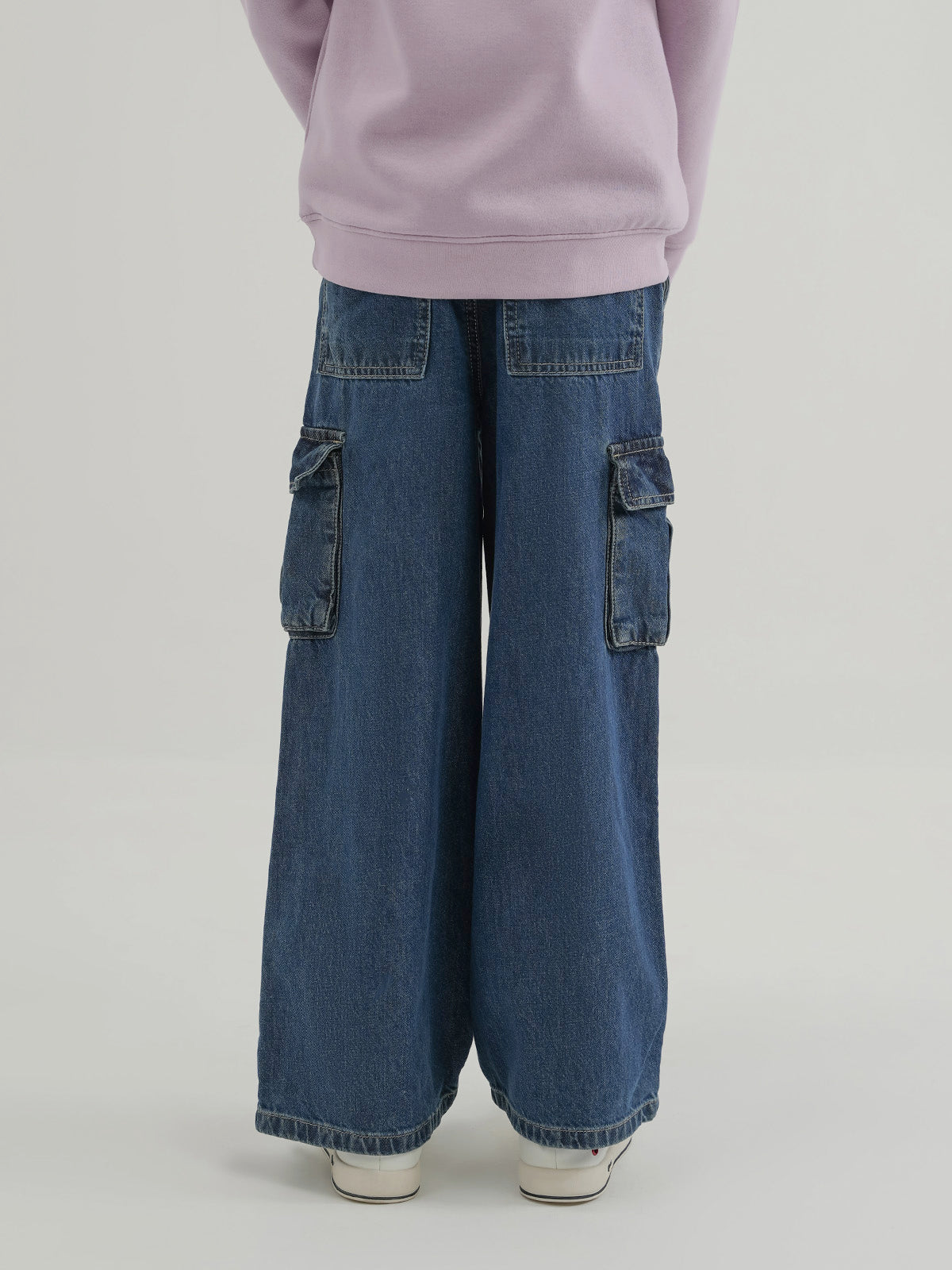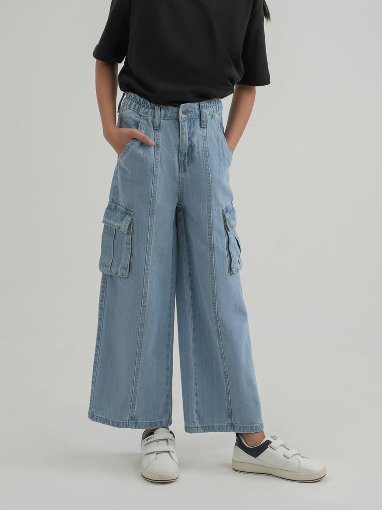Add a cool and trendy touch to her outfit with these girls' denim cargo pants. Designed in a comfortable cargo fit, they feature side pockets for a fun and practical look. Perfect for active days, school, or casual wear, these pants are both stylish and easy to move in—great for everyday adventures.