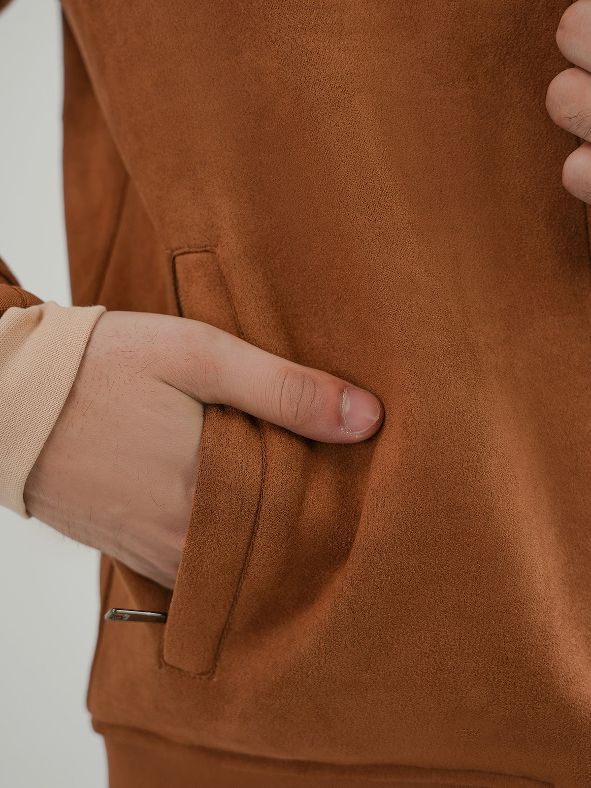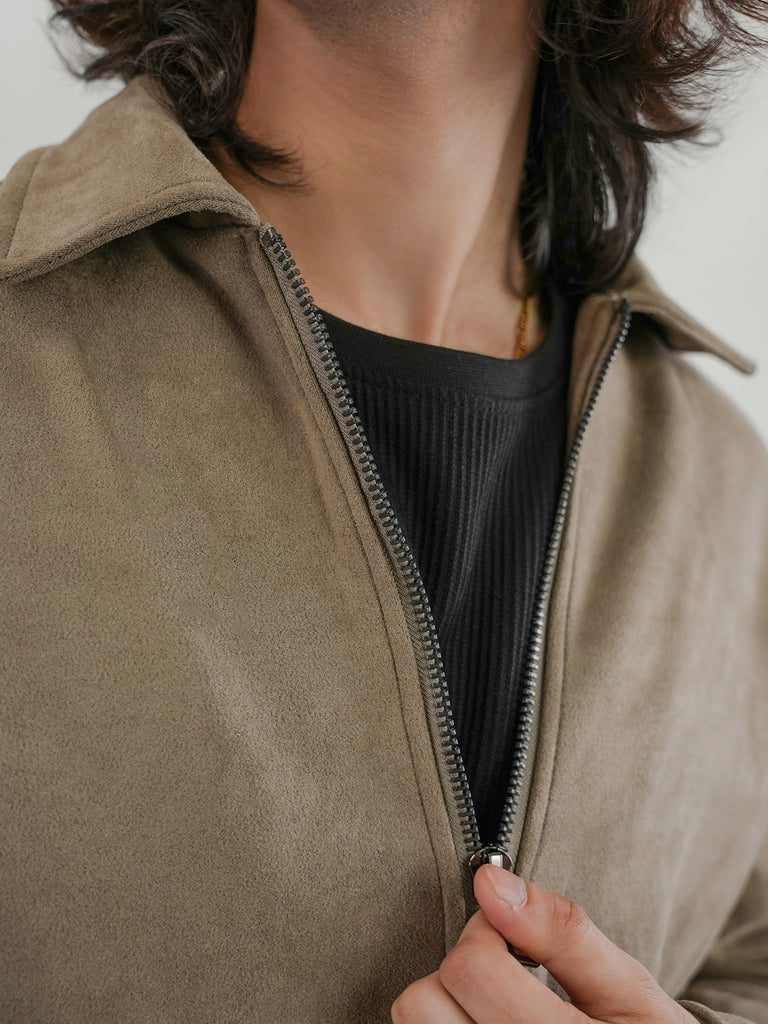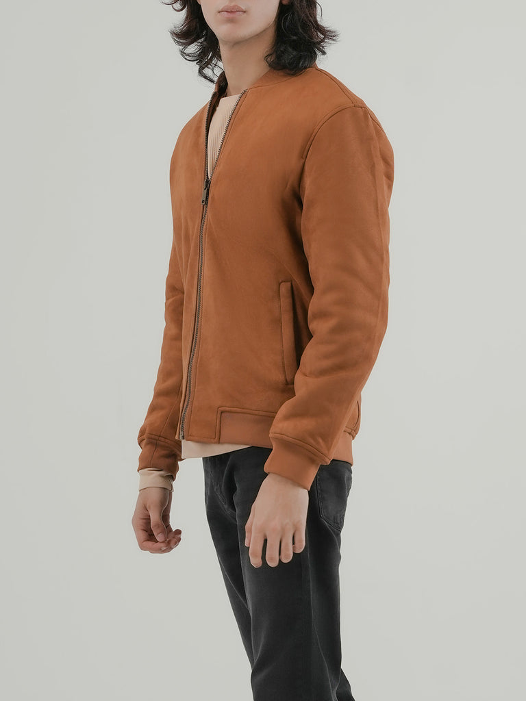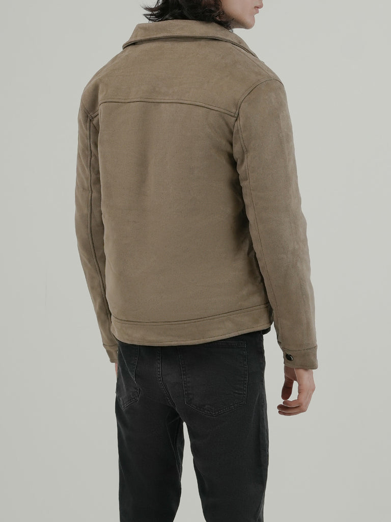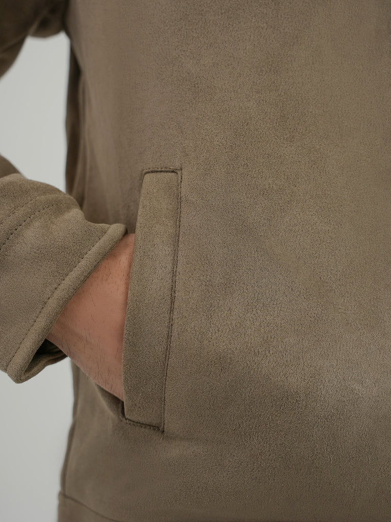 Stay warm and look sharp with this classic suede jacket. Made with soft fabric and a stylish zip-up front, it’s perfect for both casual and smart looks.