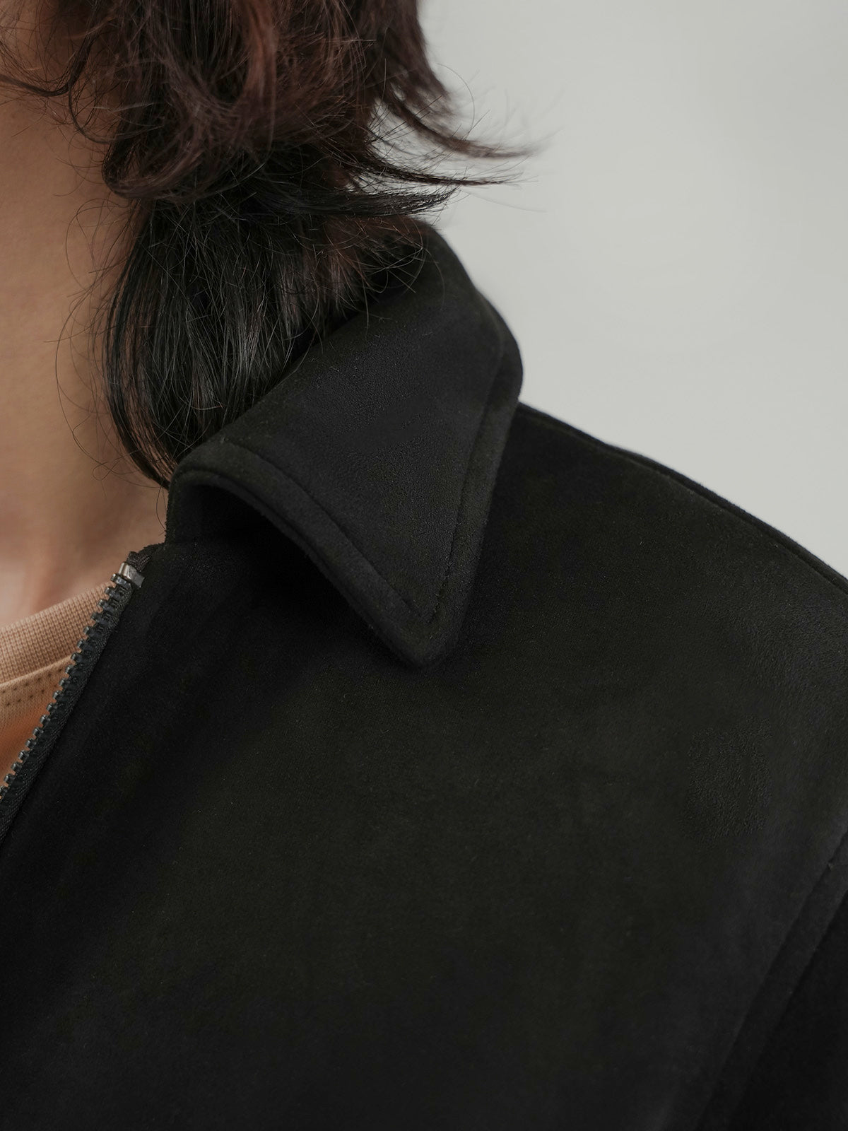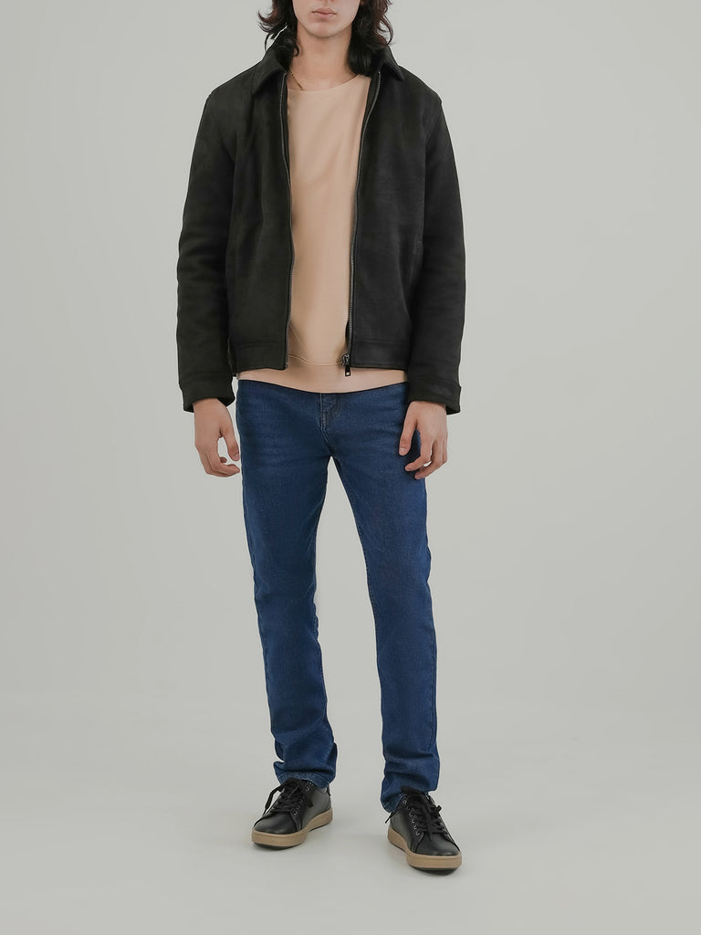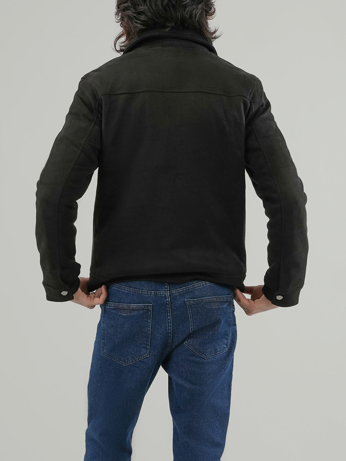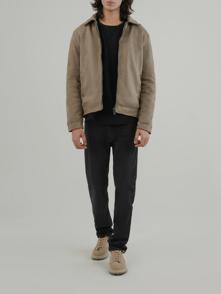 Stay warm and look sharp with this classic suede jacket. Made with soft fabric and a stylish zip-up front, it’s perfect for both casual and smart looks.