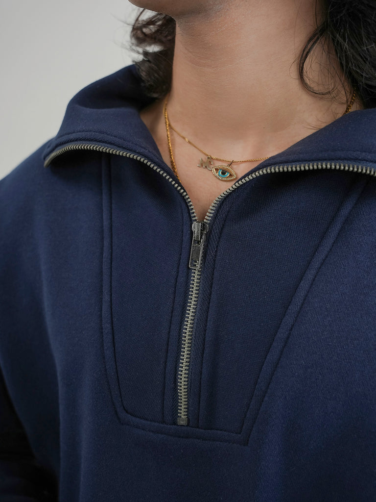 Stay warm and stylish in this half-zip fleece sweatshirt, designed with a relaxed drop shoulder fit. Made from soft fleece fabric, it combines comfort with a sporty edge, making it the perfect choice for casual outings or layering through the season.