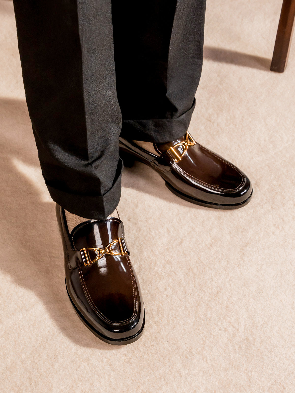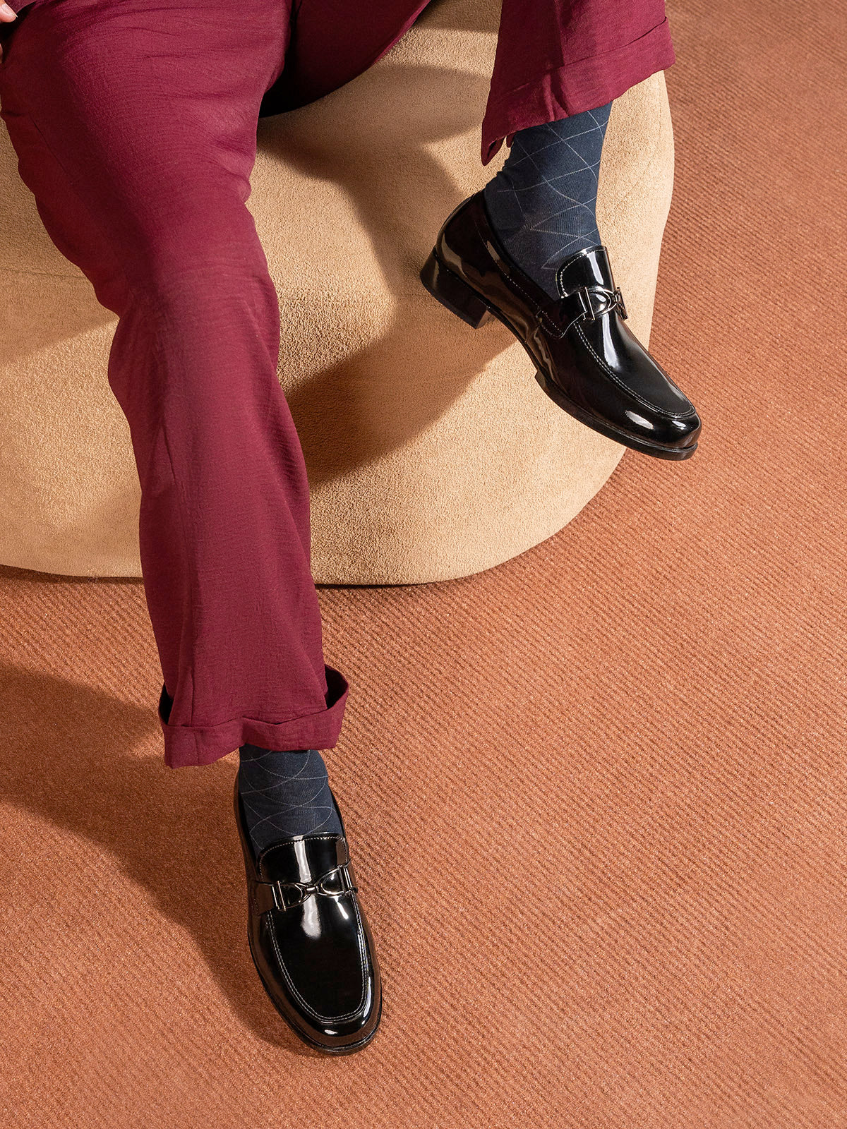 Make a statement with these men’s leather slip-on formal shoes featuring a stylish front buckle. Crafted from high-quality leather, they combine elegance with convenience, offering an easy slip-on design without compromising on sophistication.