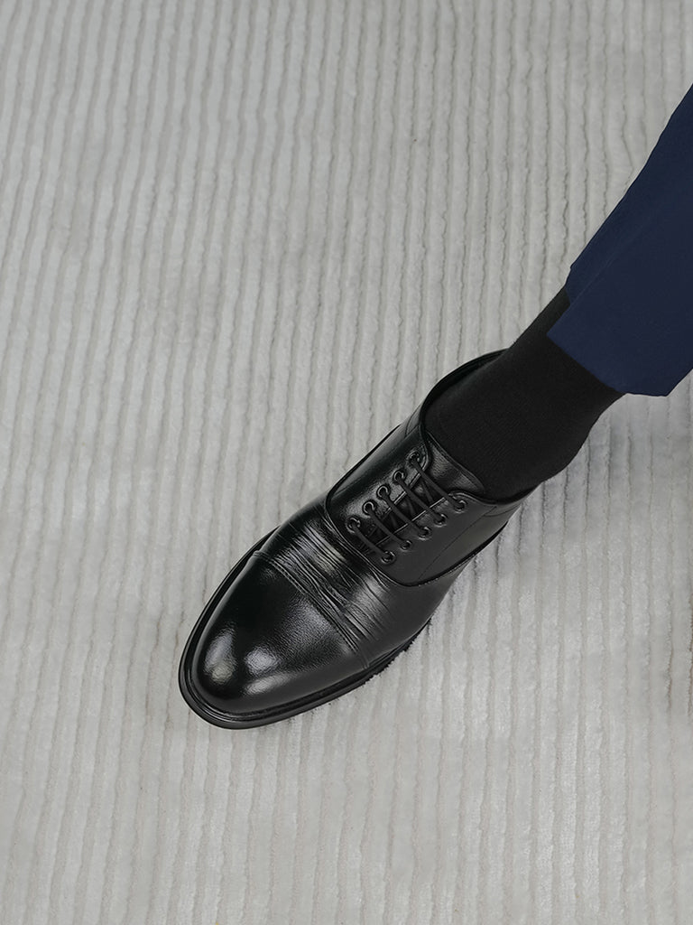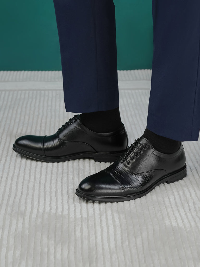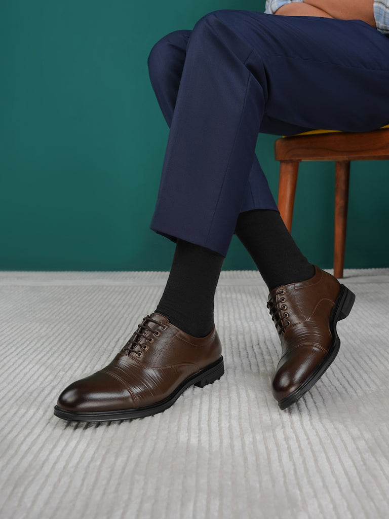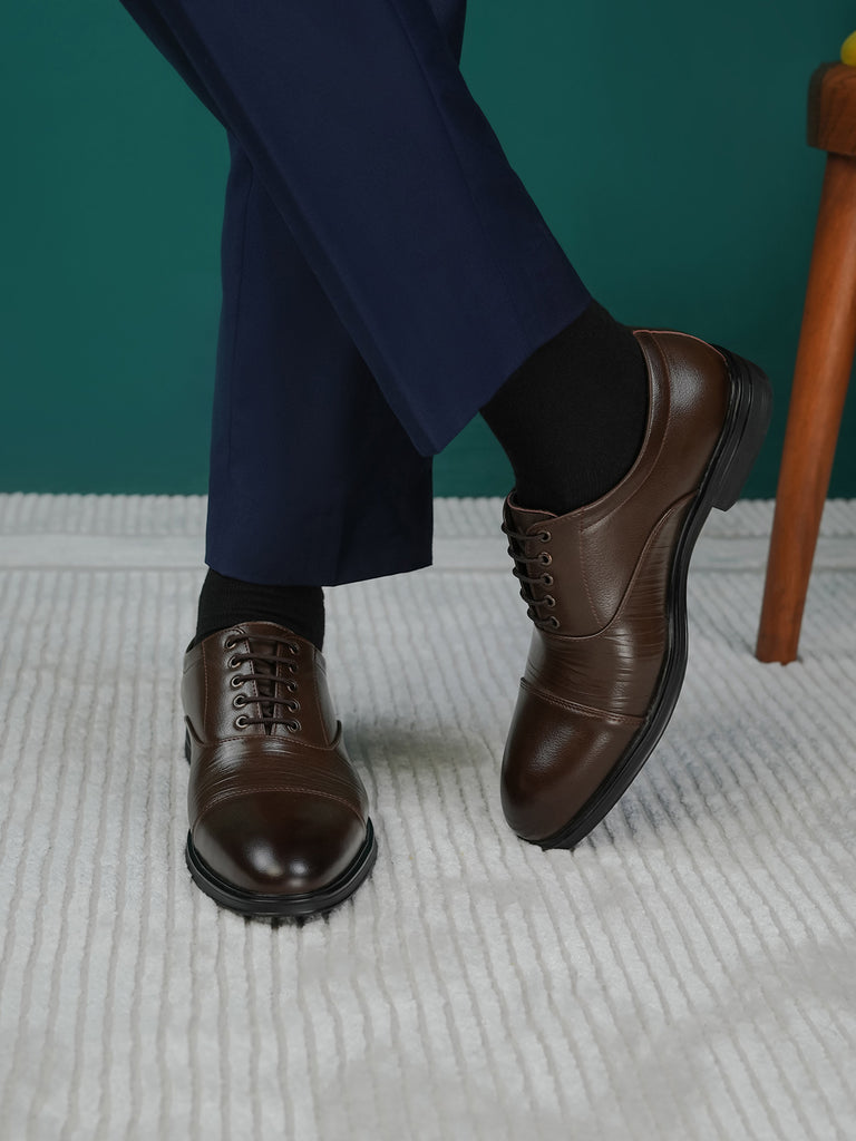 Elevate your formal attire with these men’s leather formal shoes, designed for a polished and professional look. Crafted from high-quality leather, they feature a sleek lace-up design, a rounded toe, and subtle stitched detailing on the vamp for added character.