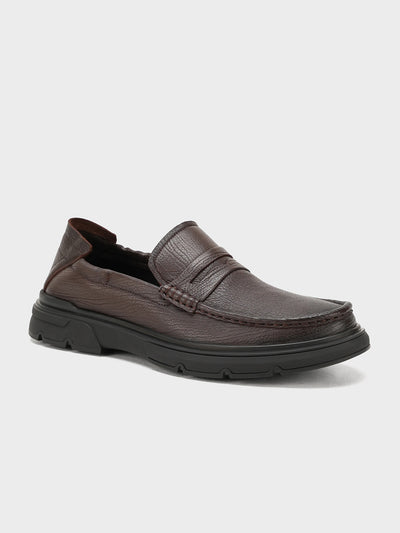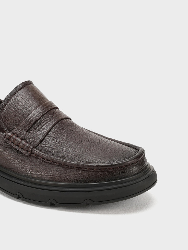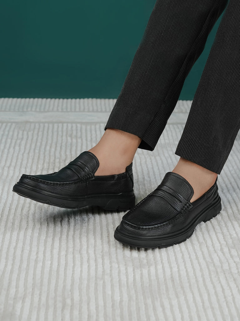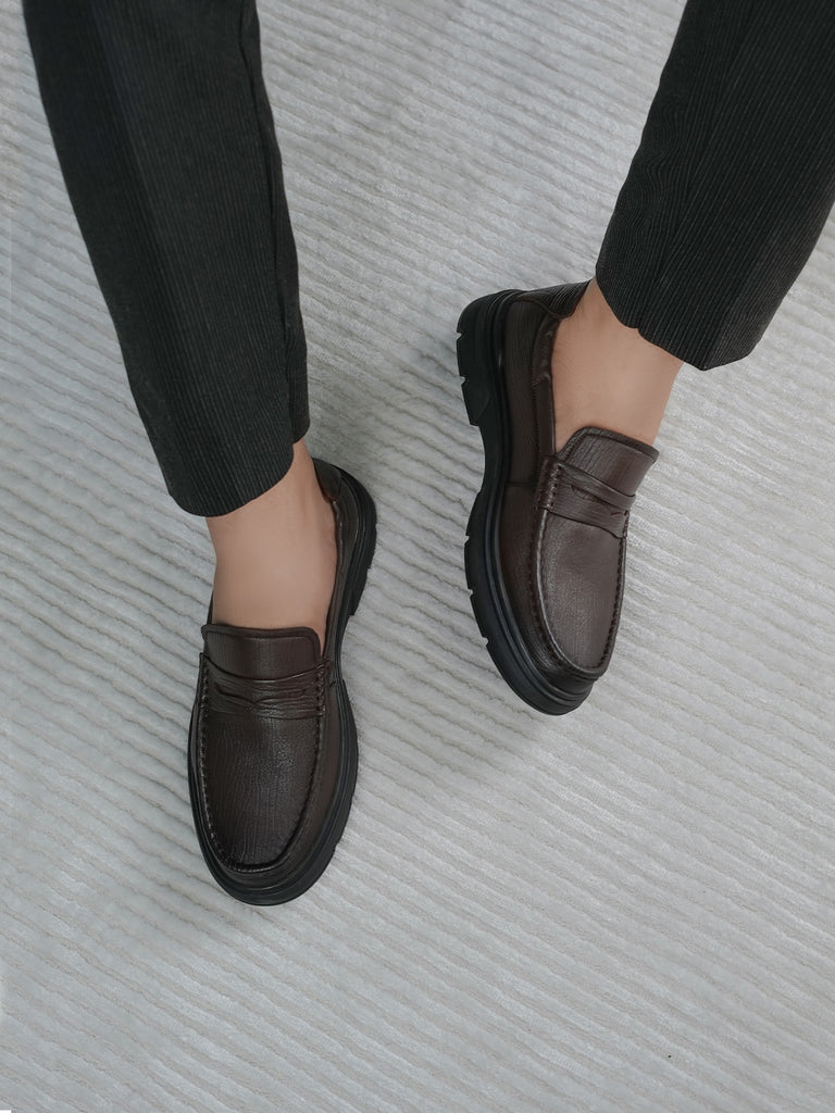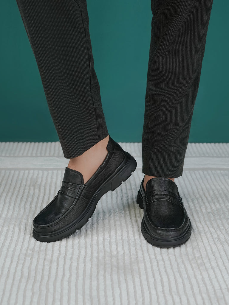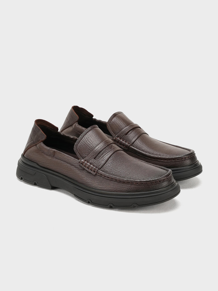 These men’s loafer leather slip-on shoes are easy to wear and stylish. Made from soft leather, they have a smooth design that looks smart for work or special events. The slip-on style means no laces – just slide your feet in and go.