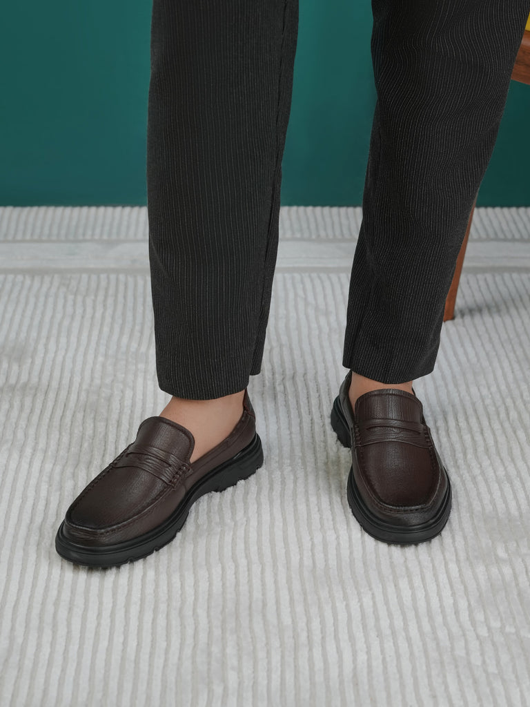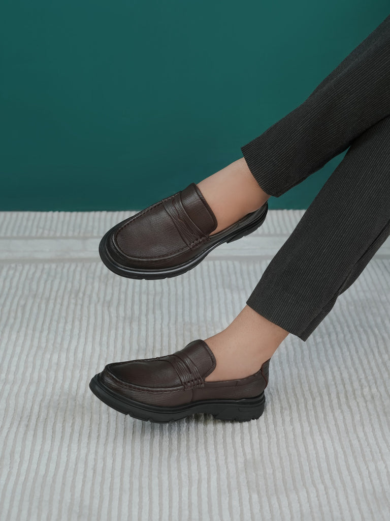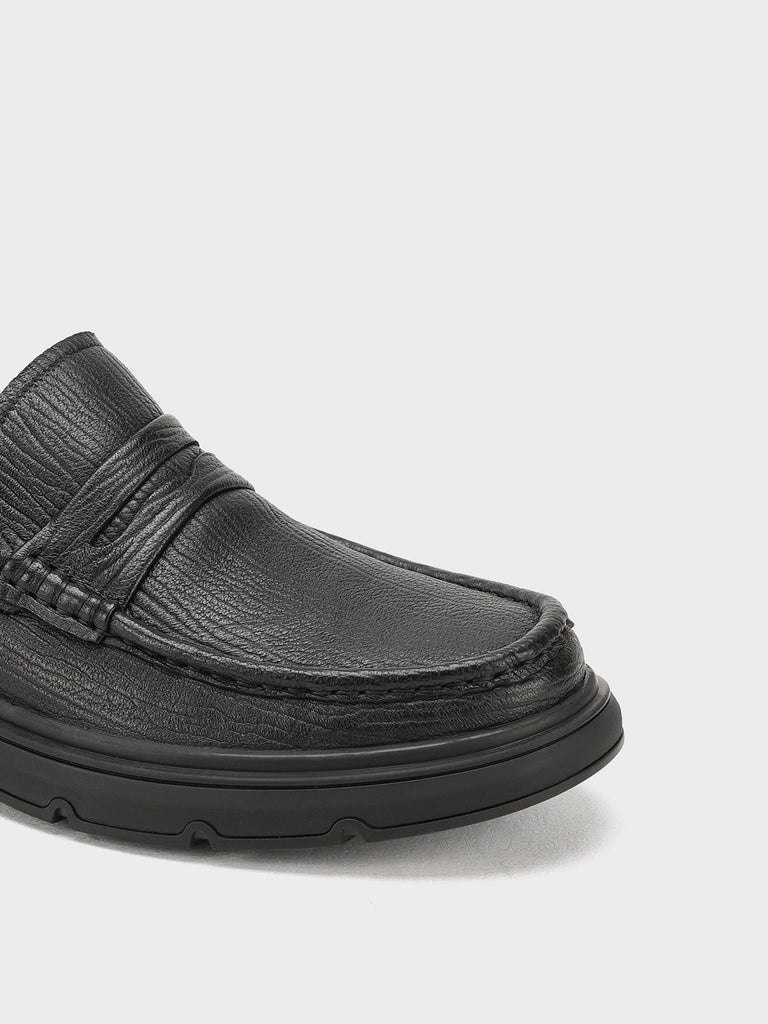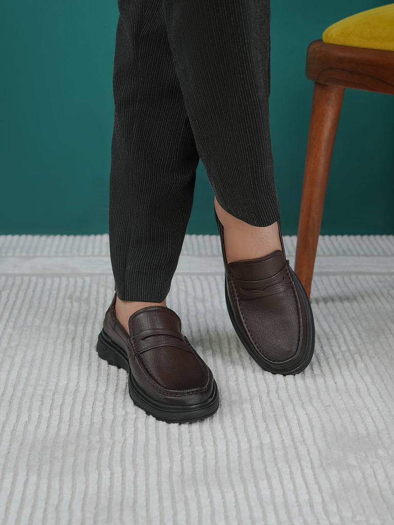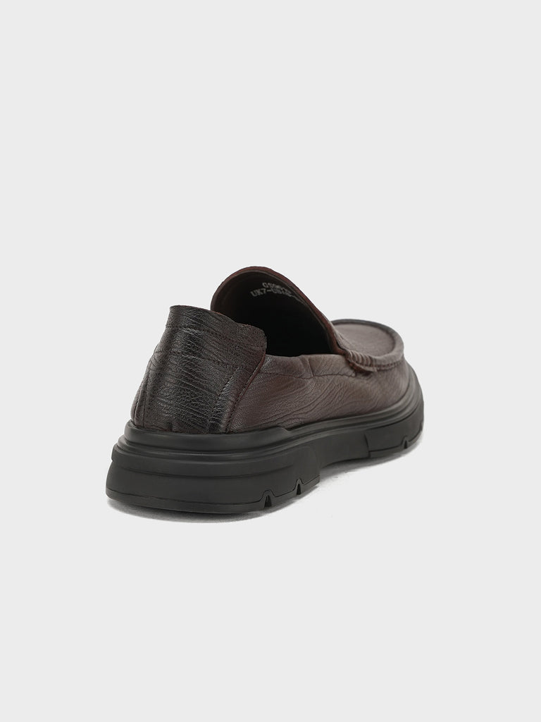 These men’s loafer leather slip-on shoes are easy to wear and stylish. Made from soft leather, they have a smooth design that looks smart for work or special events. The slip-on style means no laces – just slide your feet in and go.