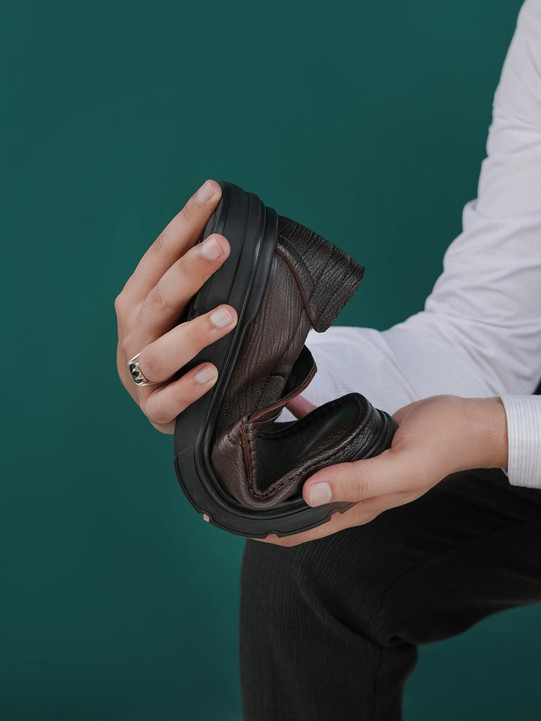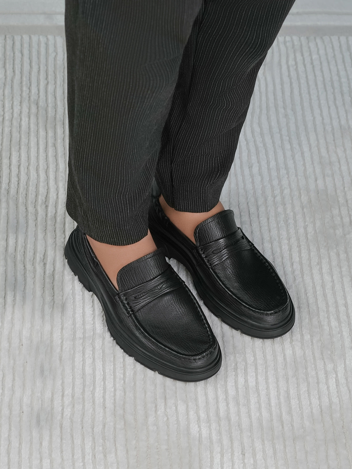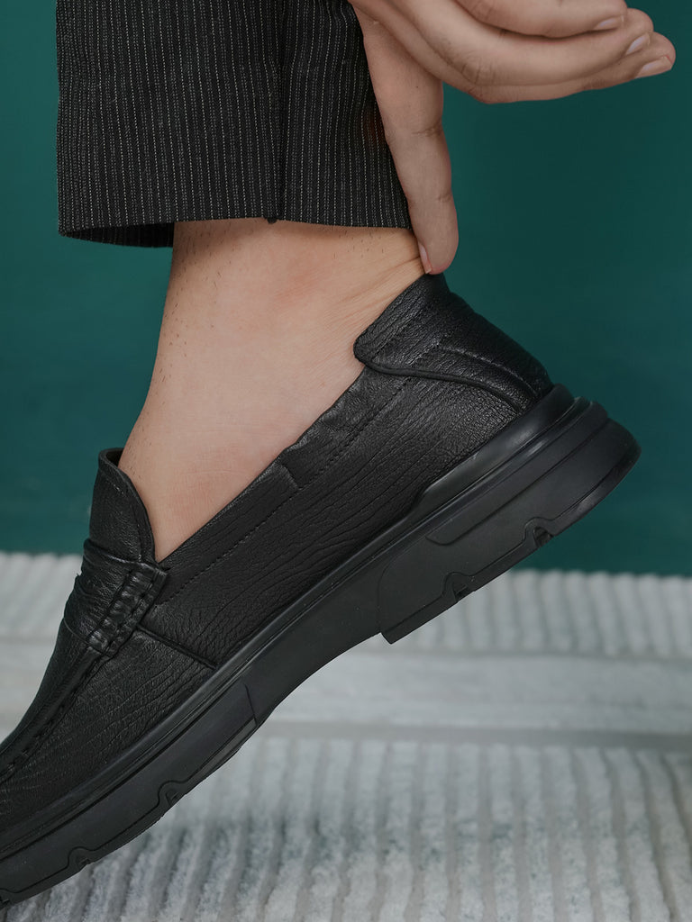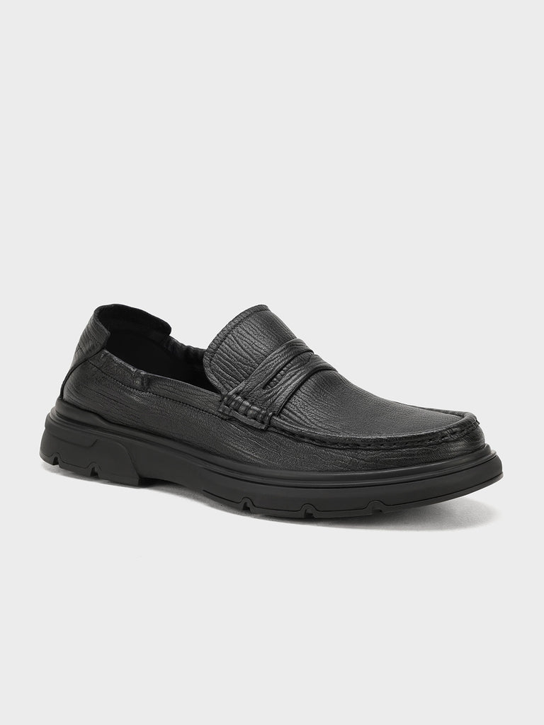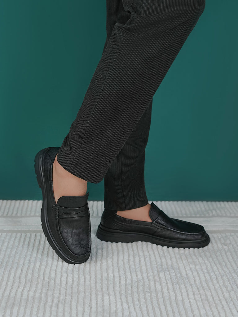 These men’s loafer leather slip-on shoes are easy to wear and stylish. Made from soft leather, they have a smooth design that looks smart for work or special events. The slip-on style means no laces – just slide your feet in and go.