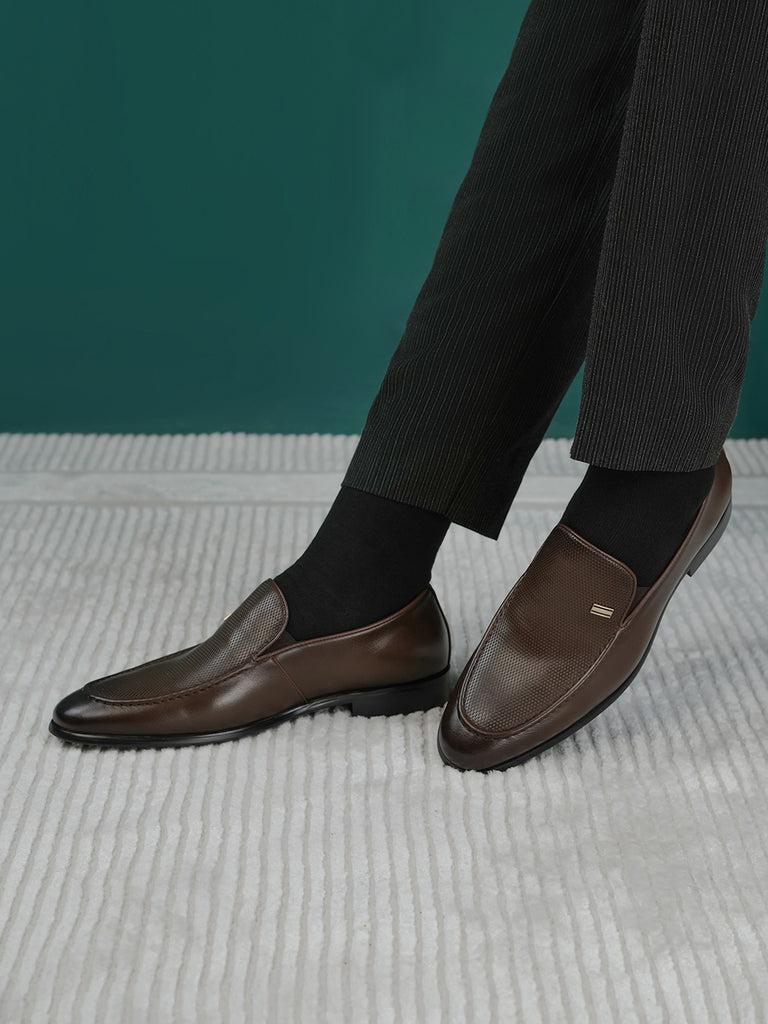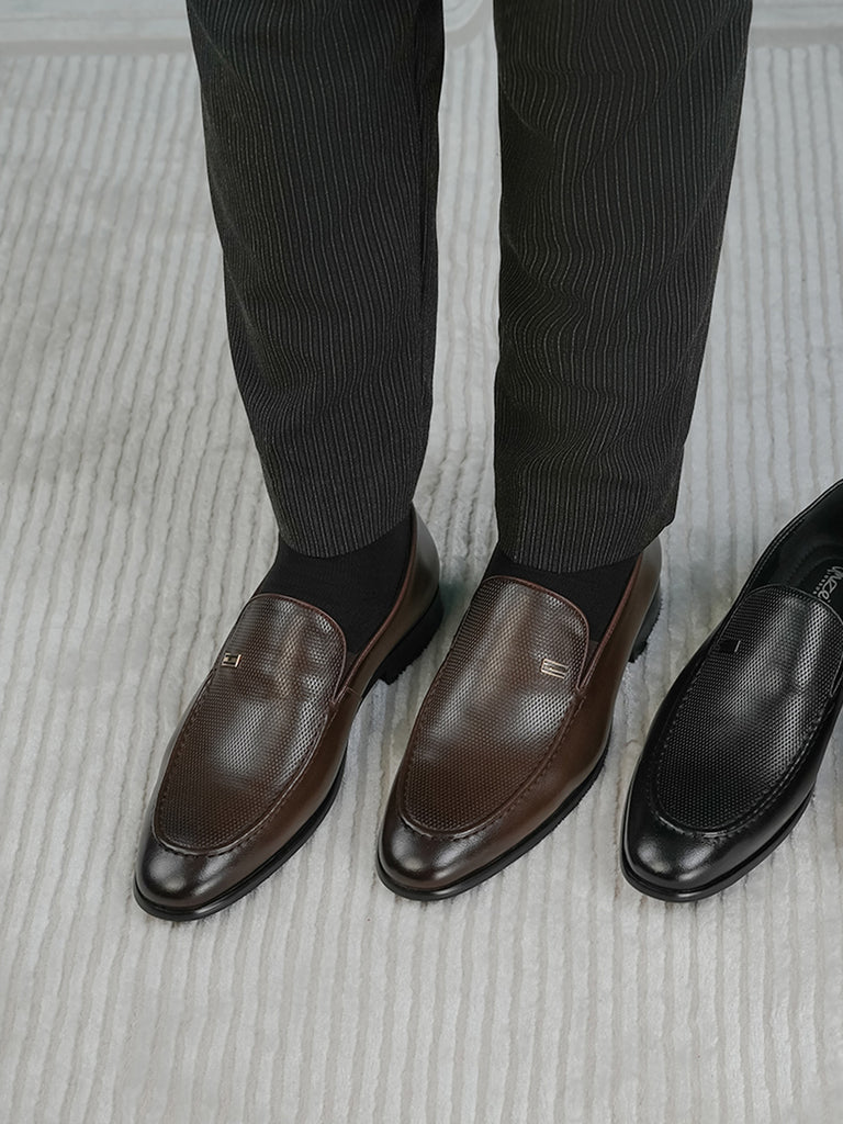 Step up your formal game with these men’s slip-on formal shoes, crafted for effortless elegance. Featuring a textured leather upper and sleek silhouette, these shoes offer a refined look with minimal effort.
