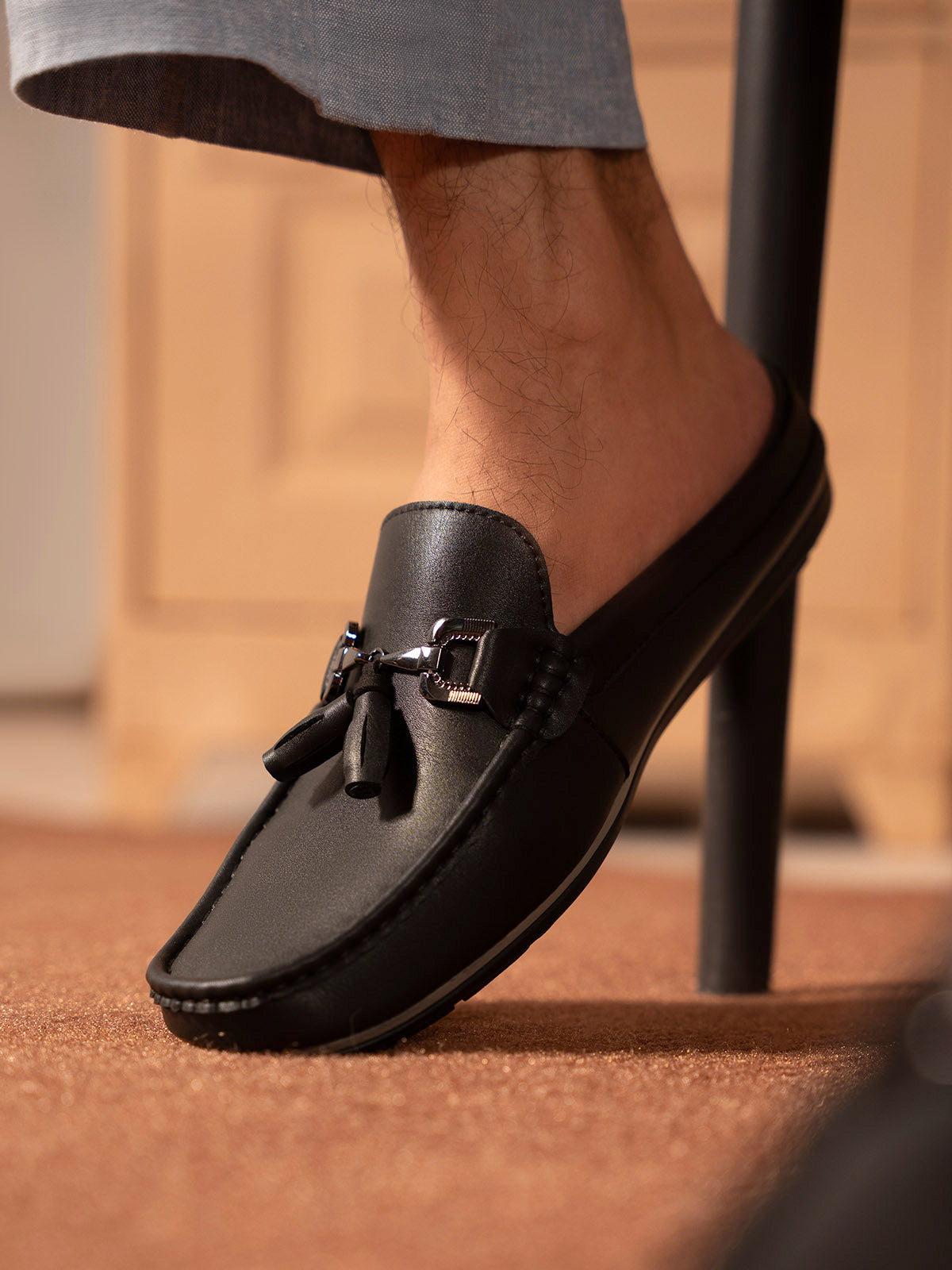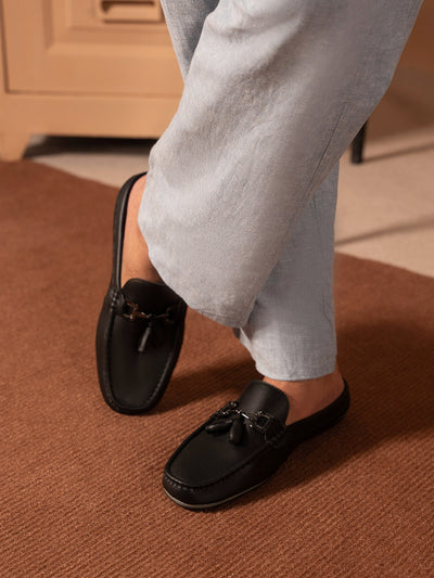 Experience the perfect combination of style and convenience with these men’s backless moccasins. Crafted from high-quality materials, they offer a sleek, modern look while providing easy slip-on wear. The backless design ensures breathability and comfort.