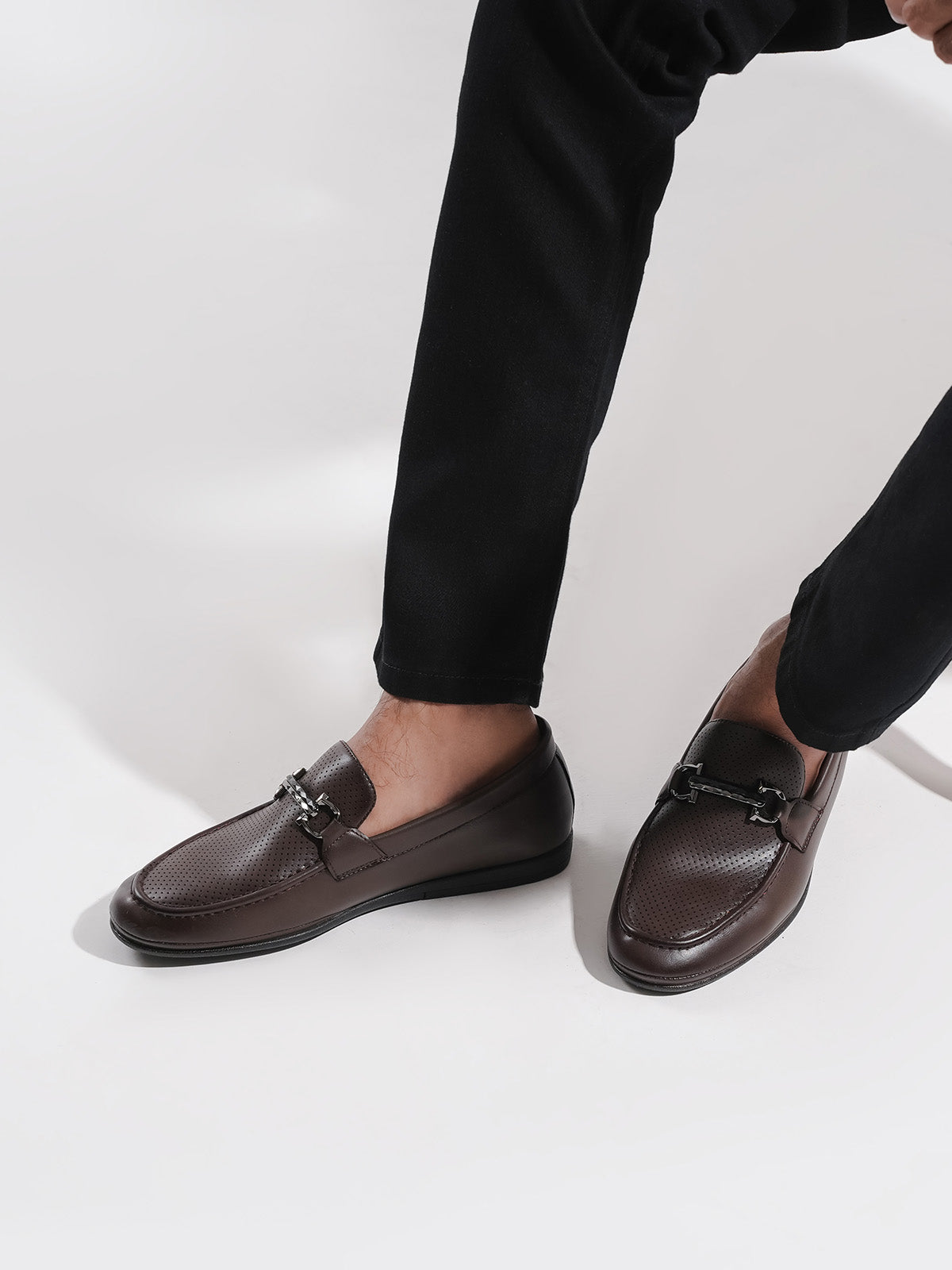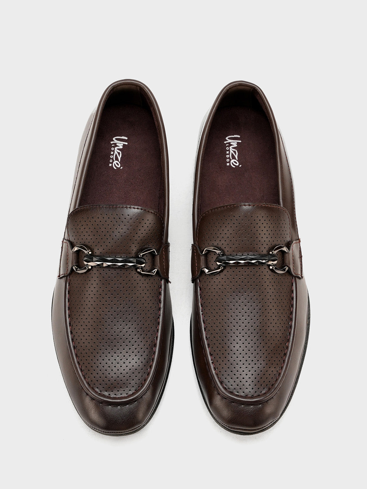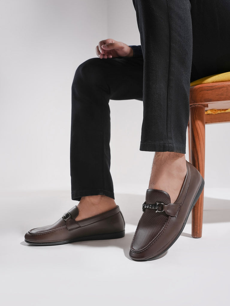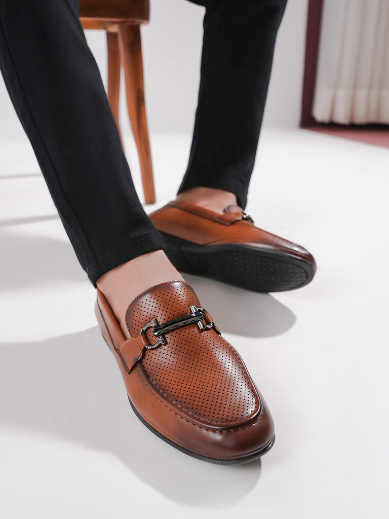 Upgrade your footwear game with these uniquely styled men’s loafers. Designed with a sleek perforated upper and a classy metal buckle, they bring a fresh twist to classic comfort. Ideal for both casual gatherings and smart occasions.
