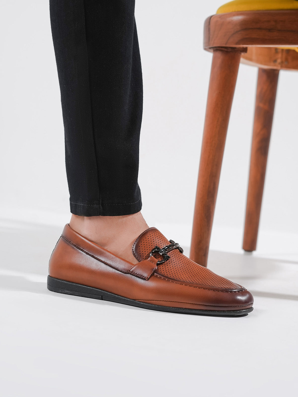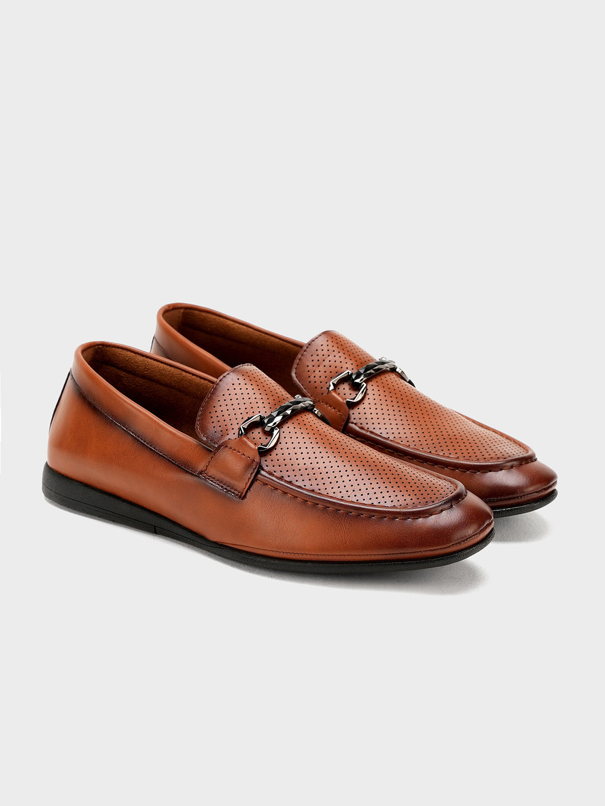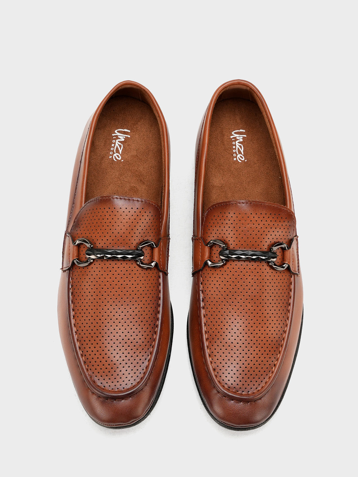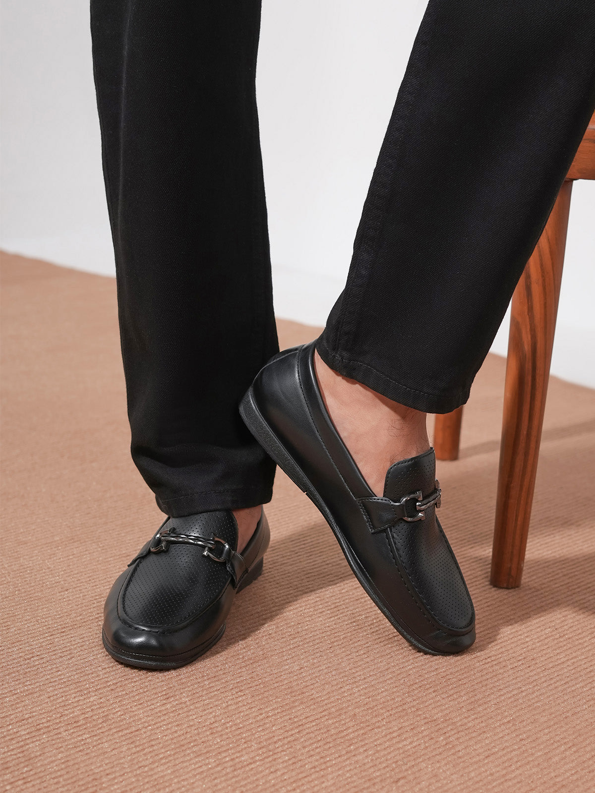 Upgrade your footwear game with these uniquely styled men’s loafers. Designed with a sleek perforated upper and a classy metal buckle, they bring a fresh twist to classic comfort. Ideal for both casual gatherings and smart occasions.