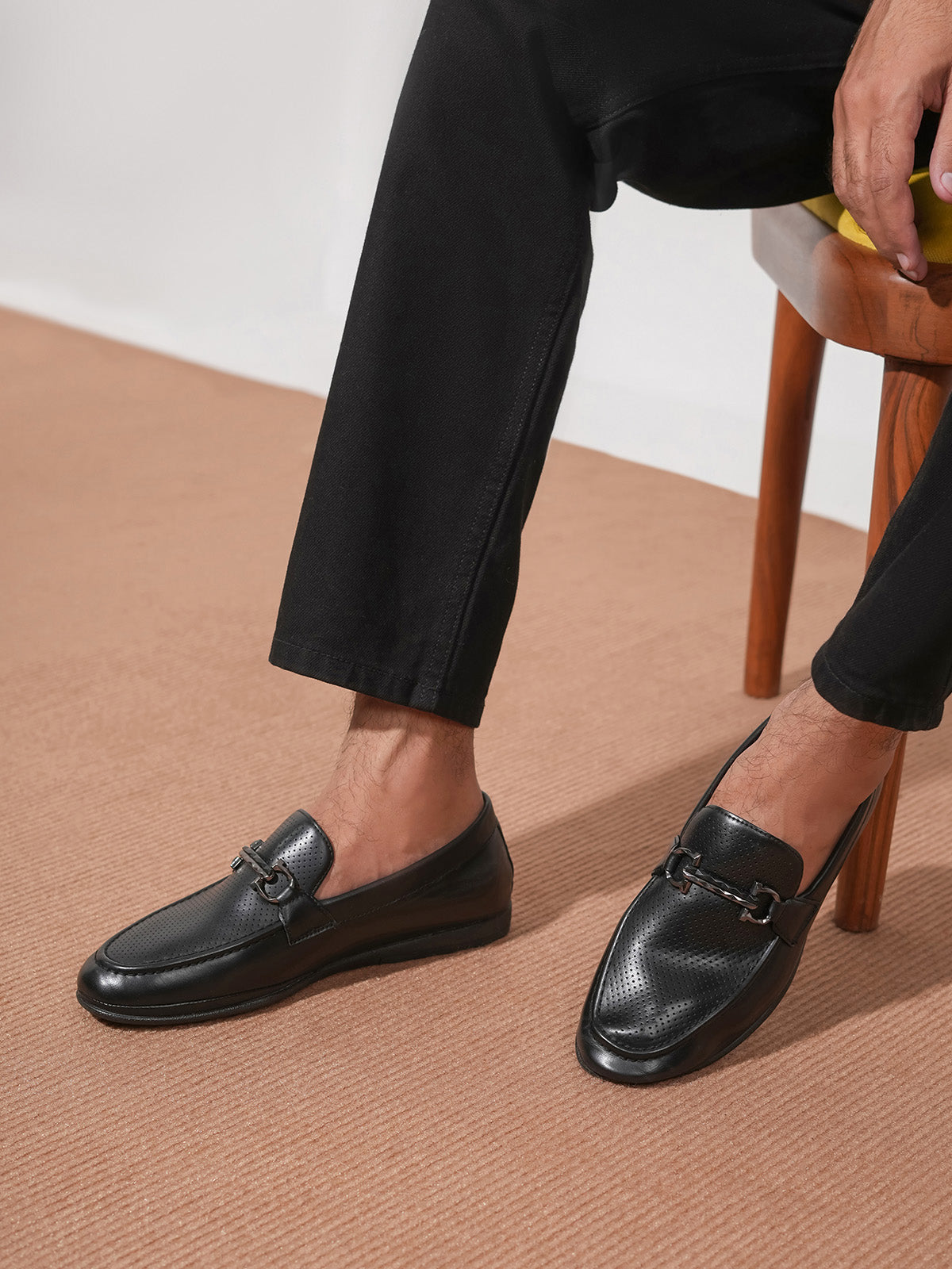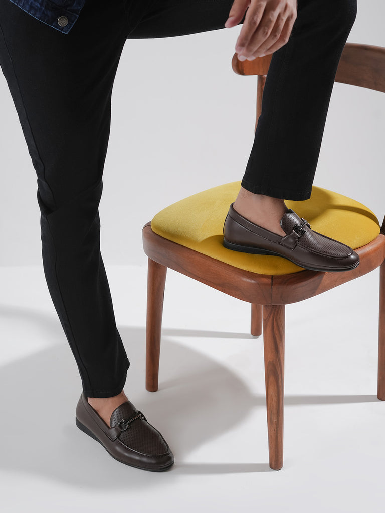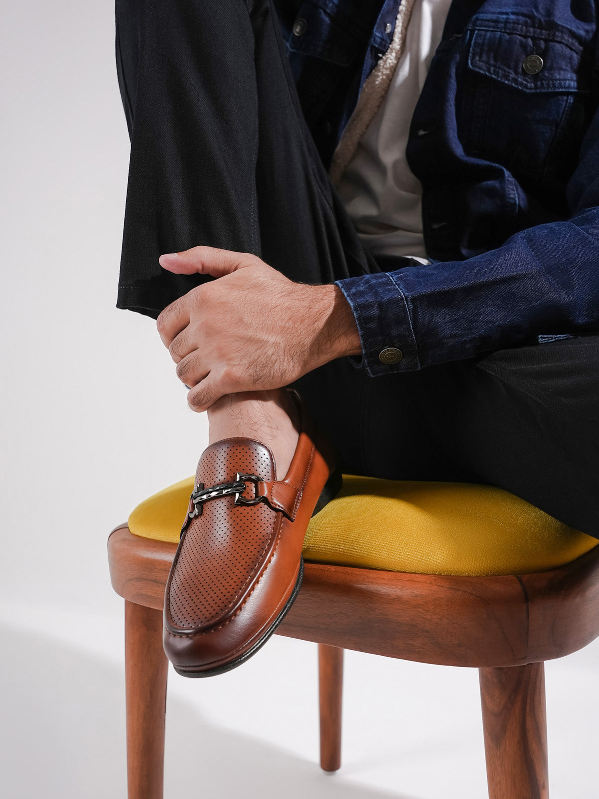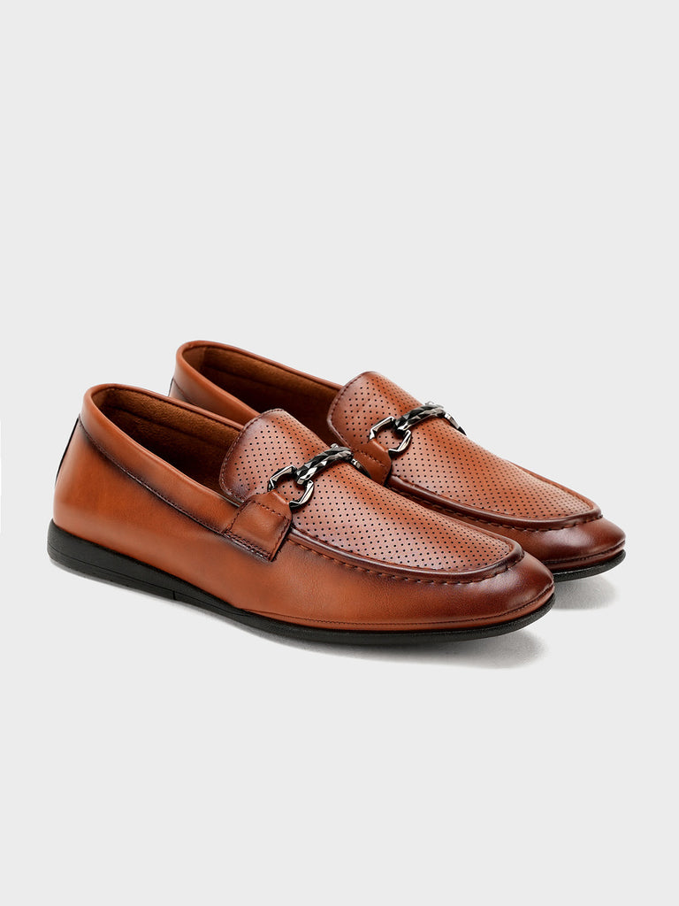 Upgrade your footwear game with these uniquely styled men’s loafers. Designed with a sleek perforated upper and a classy metal buckle, they bring a fresh twist to classic comfort. Ideal for both casual gatherings and smart occasions.