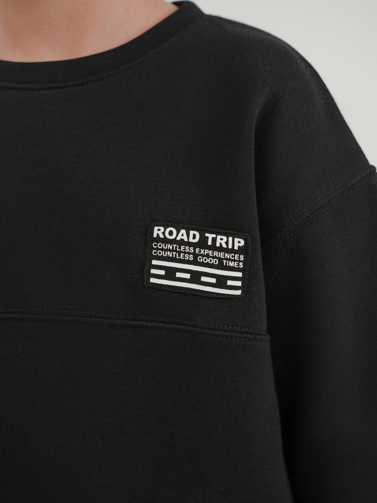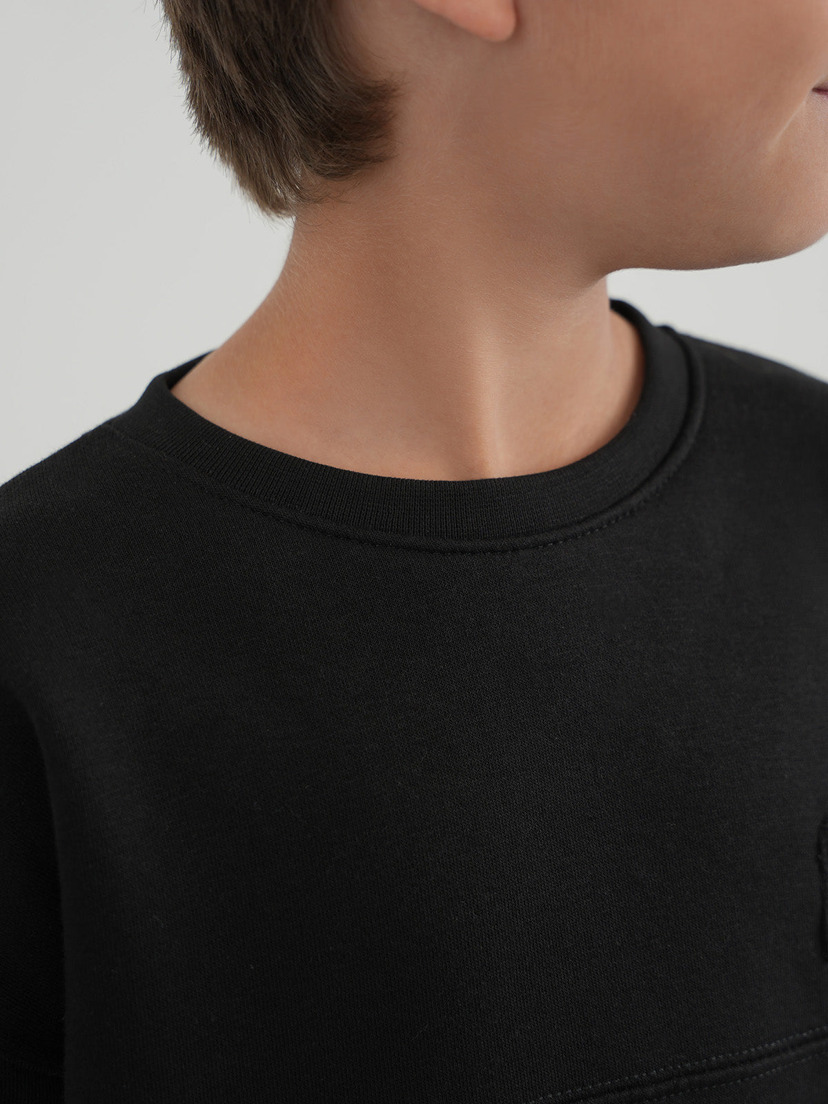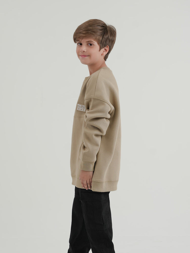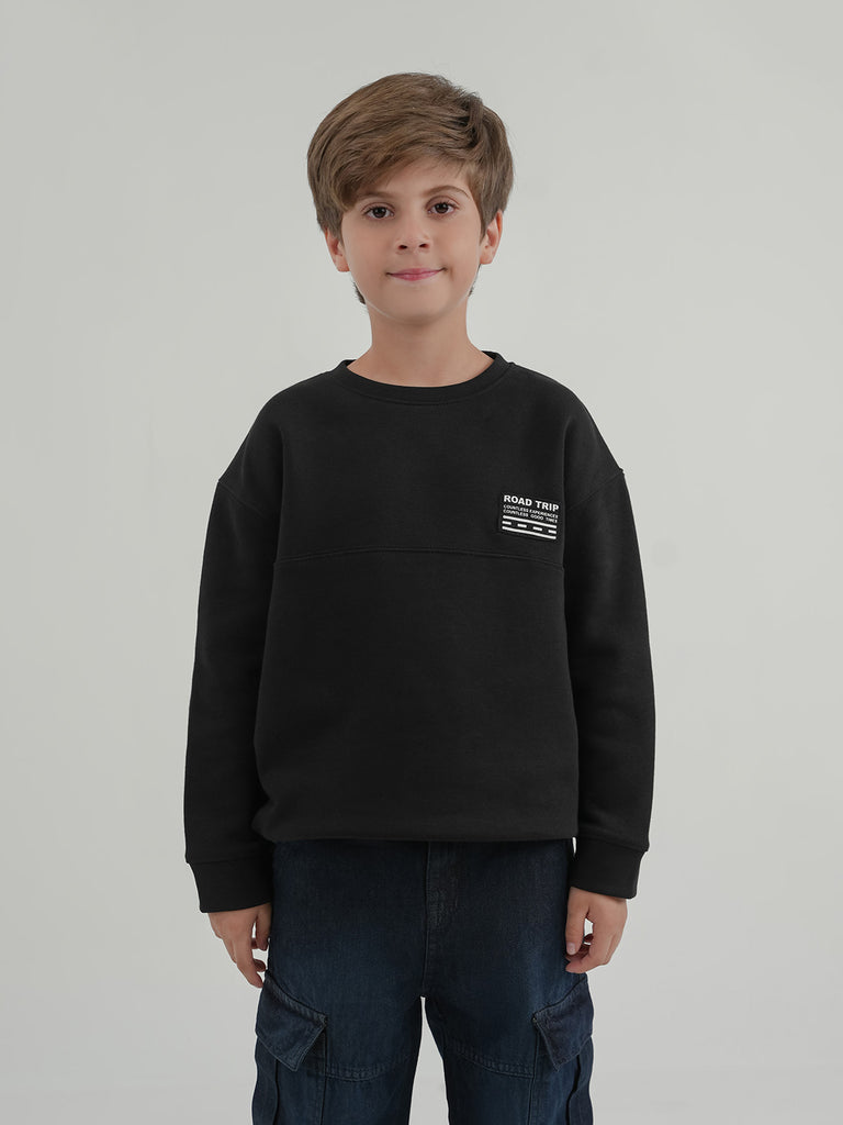 Keep it cool and comfy with this boys' fleece sweatshirt. Made with soft fabric and a relaxed fit, it features a stylish chest patch detail and drop shoulders for a trendy look. Perfect for school, play, or casual outings.