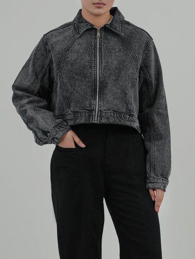 Add a trendy touch to your outfit with this women's cropped denim jacket. Featuring a short, modern cut and classic denim style, it’s perfect for layering over dresses or high-waisted bottoms.