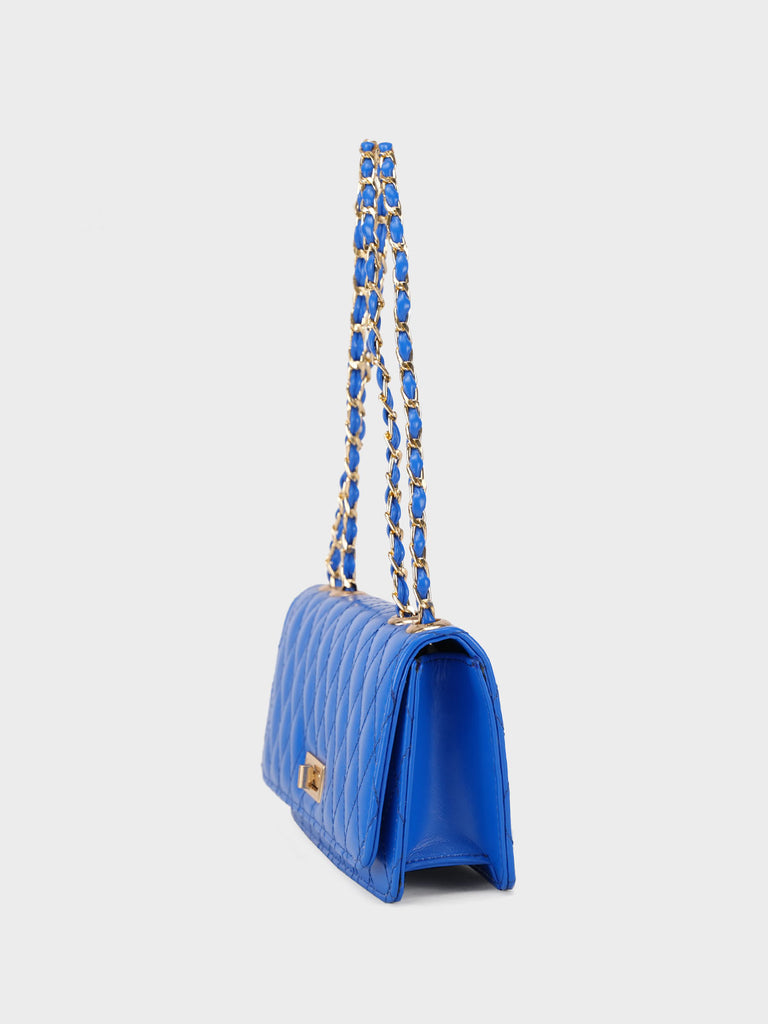 Update your everyday wardrobe with this super stylish shoulder bag. Crossover strappy designed exterior gives ultimate classic look to it.For a fashion forwards looks grab this stylish shoulder bag. Contrasted detailed panels that give ultimate chic looks. Metallic chained strap add some more glam to it.