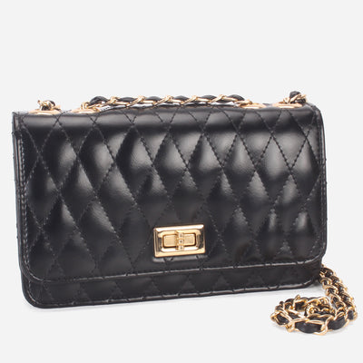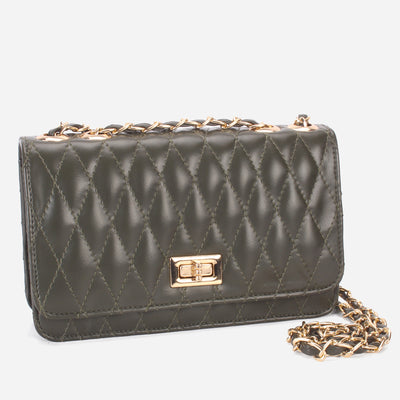 Update your everyday wardrobe with this super stylish shoulder bag. Crossover strappy designed exterior gives ultimate classic look to it.For a fashion forwards looks grab this stylish shoulder bag. Contrasted detailed panels that give ultimate chic looks. Metallic chained strap add some more glam to it.