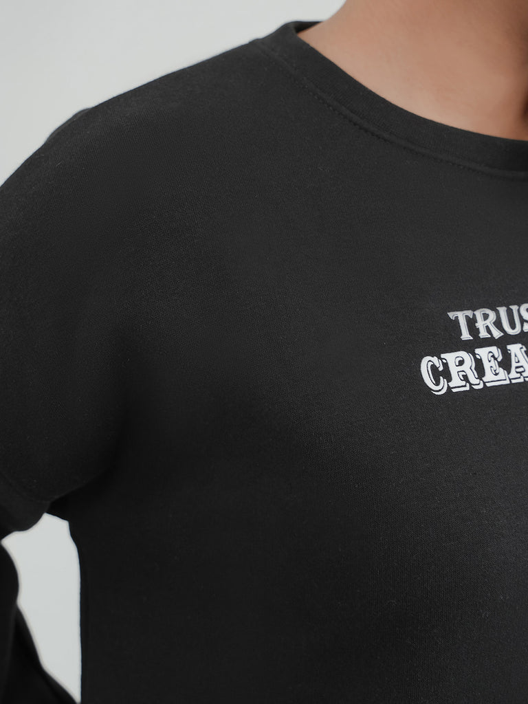 Make a statement in cozy style with this graphic fleece sweatshirt. Crafted from soft, warm fleece, it features eye-catching graphic prints that add personality to your everyday look. With a relaxed fit, ribbed cuffs, and a classic crew neck, it's perfect for layering or wearing solo.