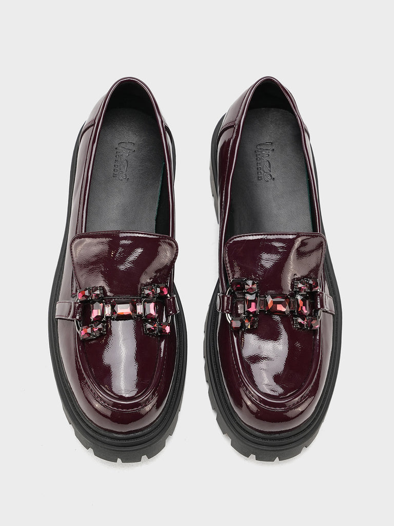 Add a bold touch to your wardrobe with these latest women’s loafers. Designed with a shiny finish, sturdy platform sole, and stylish buckle detail, these loafers offer both comfort and modern flair.