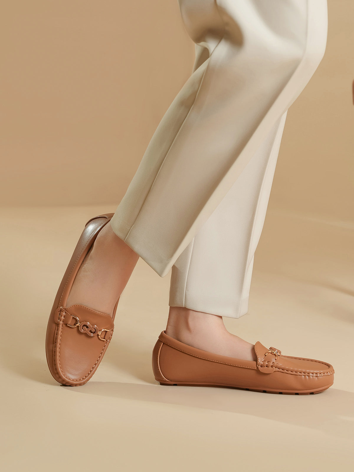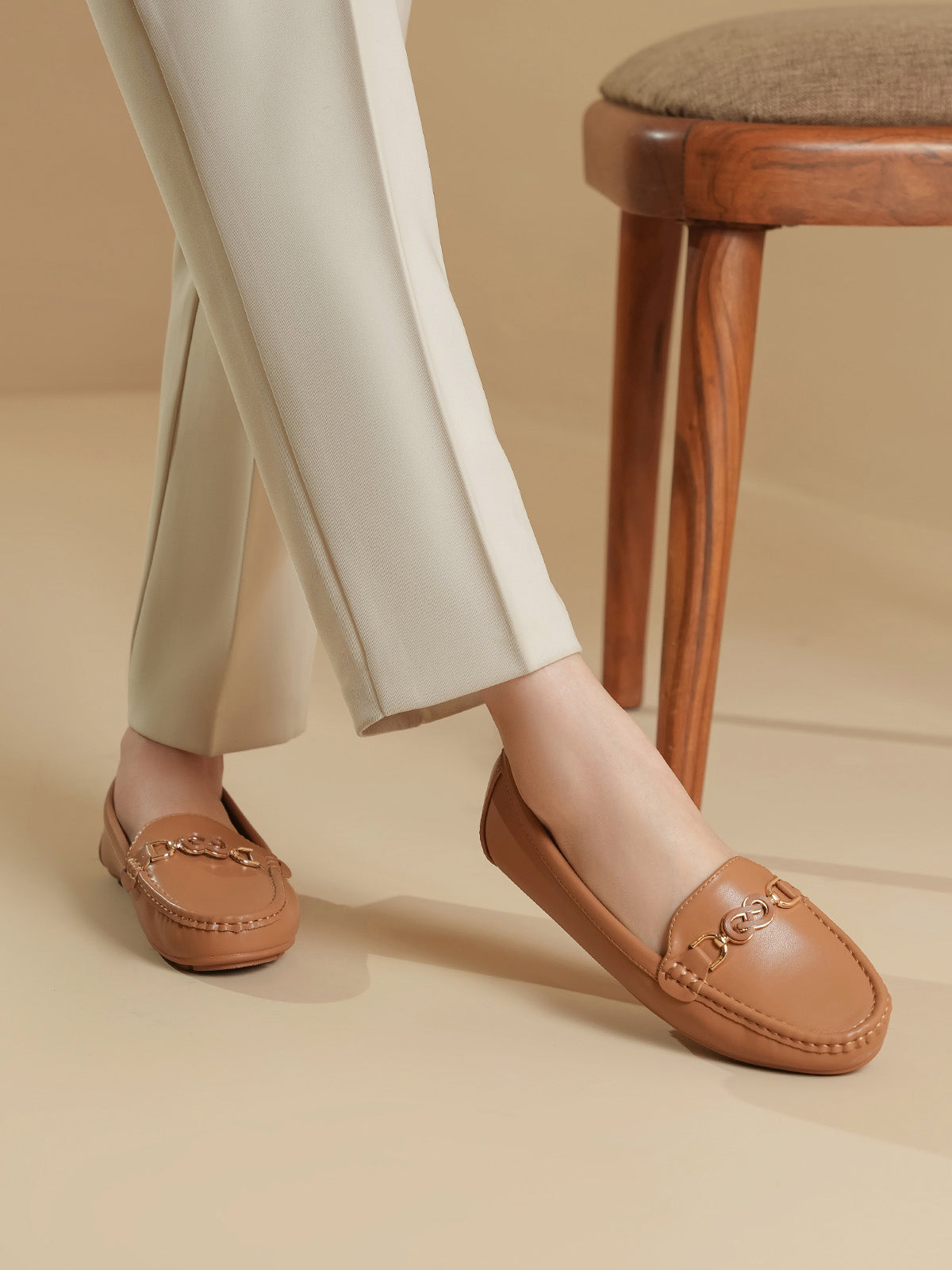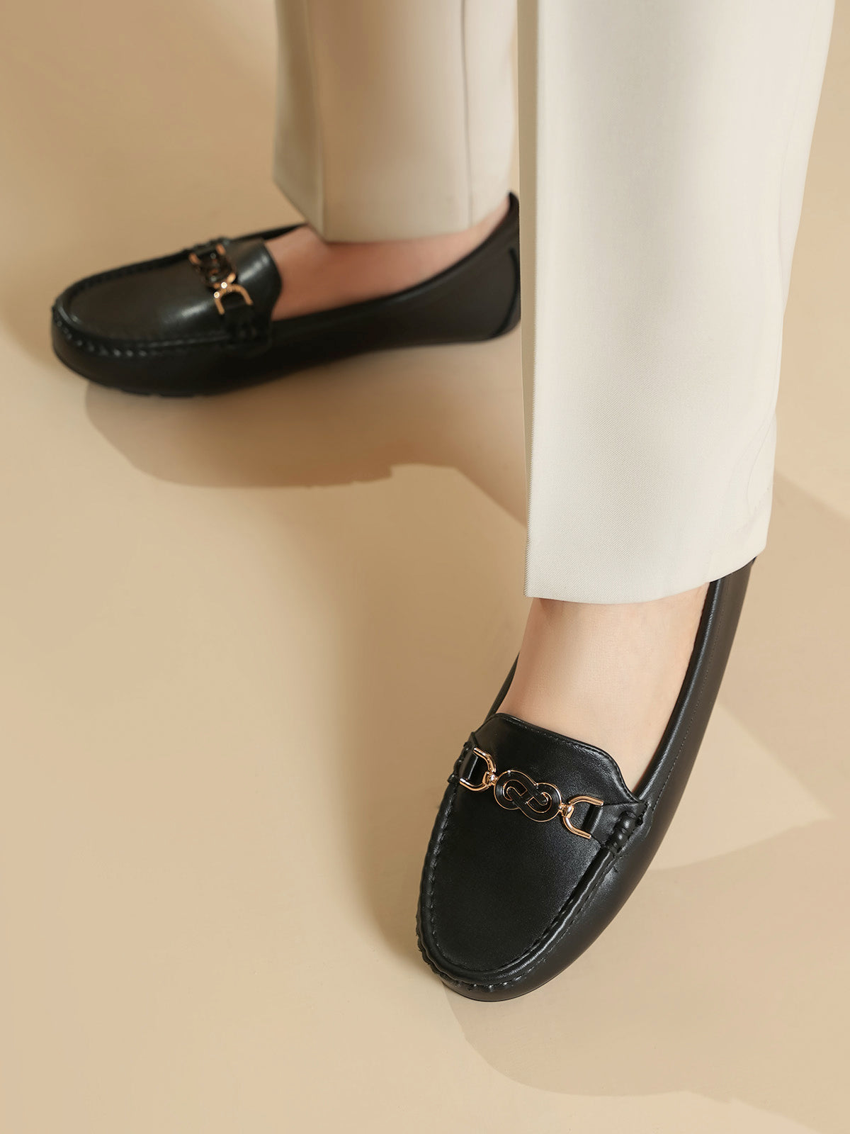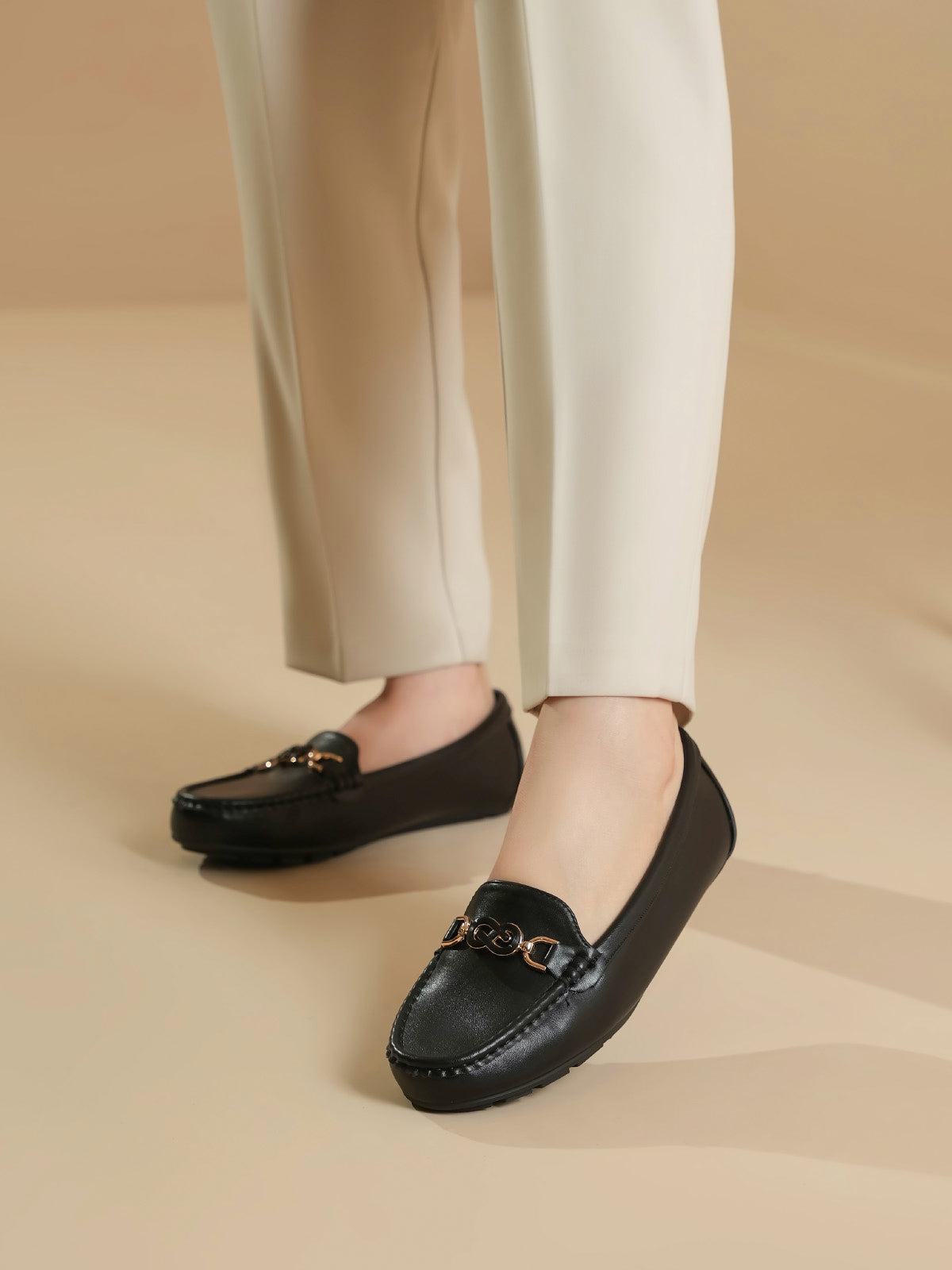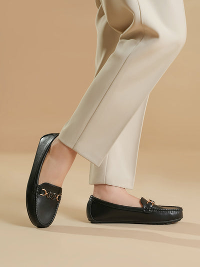 Step out in style with these elegant moccasins, featuring a sleek design and a fashionable buckle on top. Easy to slip on and made for all-day comfort, they’re perfect for both casual and semi-formal looks.
