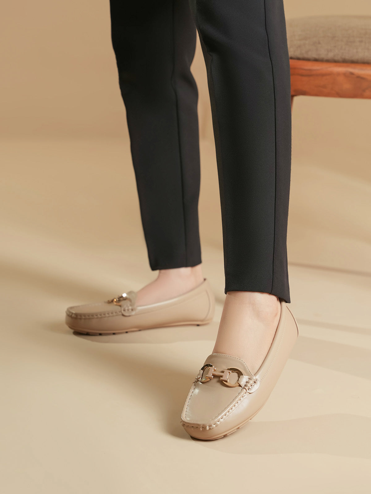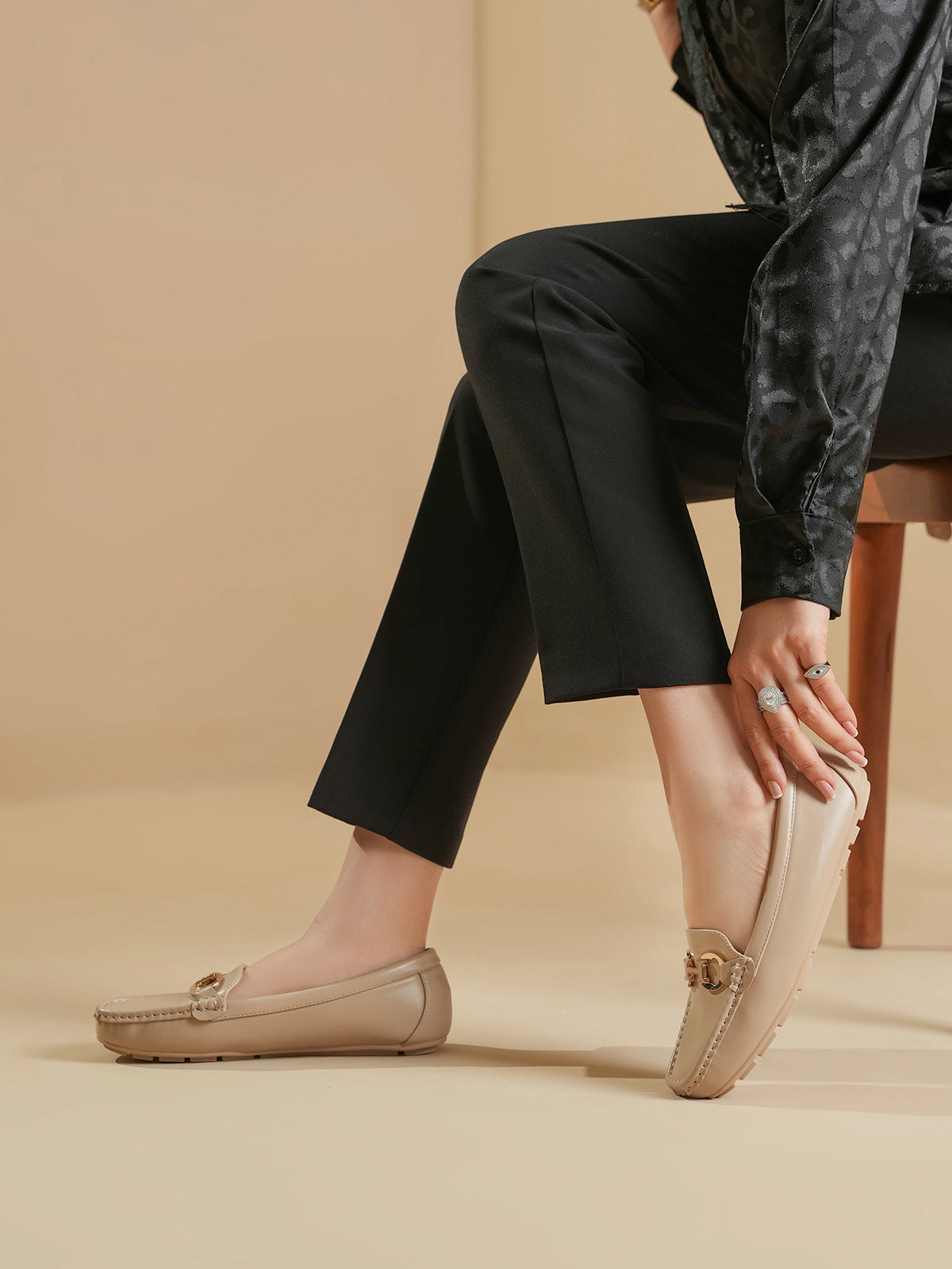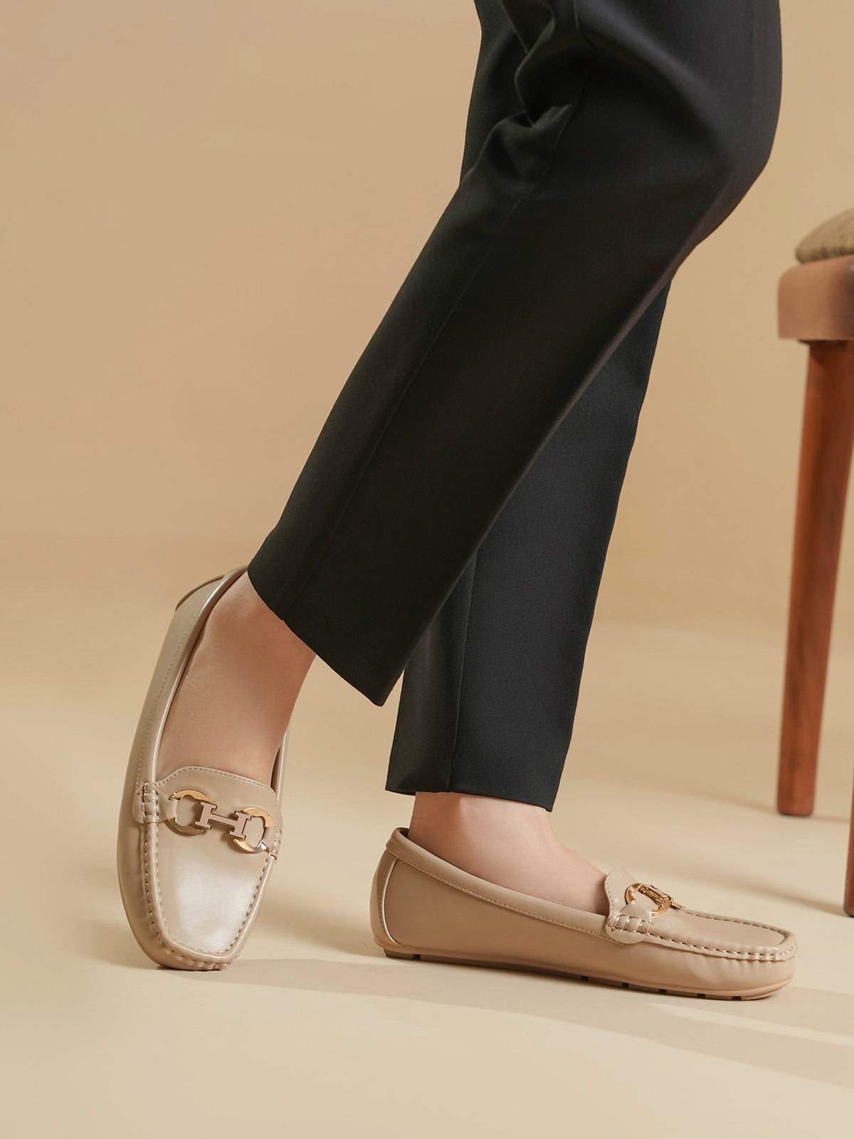 These moccasins feature a sleek design with a stylish metal buckle on the front. Made for all-day comfort, they are soft, easy to wear, and perfect for everyday or office looks. A great mix of elegance and ease.