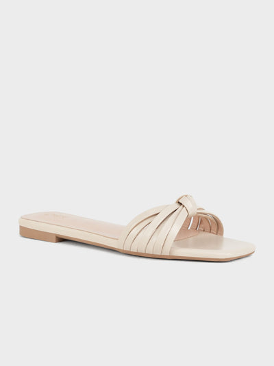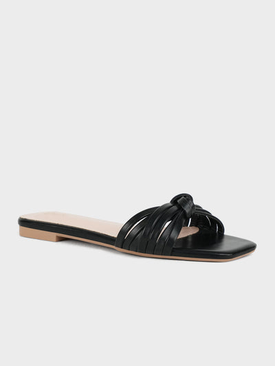 Enjoy effortless style with these flat open-toe slippers, featuring a simple yet sophisticated knotted-adorned upper. Perfect for sunny days and relaxed vibes. These sleek slippers have comfortable insole and perfect style.