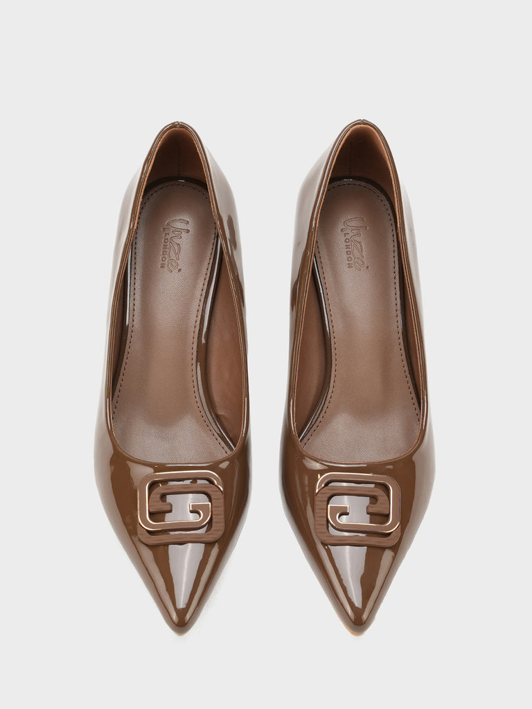 Step into elegance with these women’s court shoes featuring a pointed toe and a stylish upper buckle. The sleek silhouette adds a touch of sophistication, while the decorative buckle detail enhances the overall charm. Perfect for office wear.