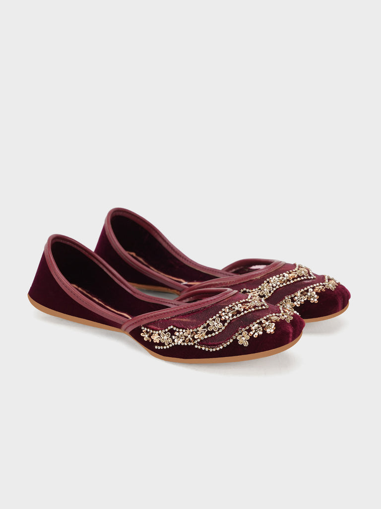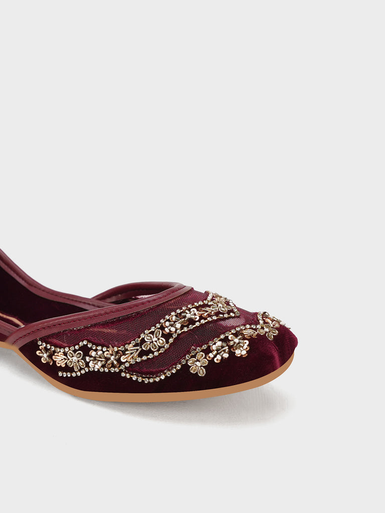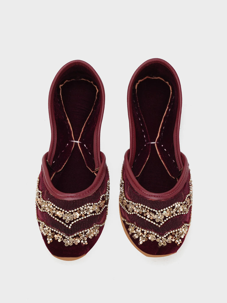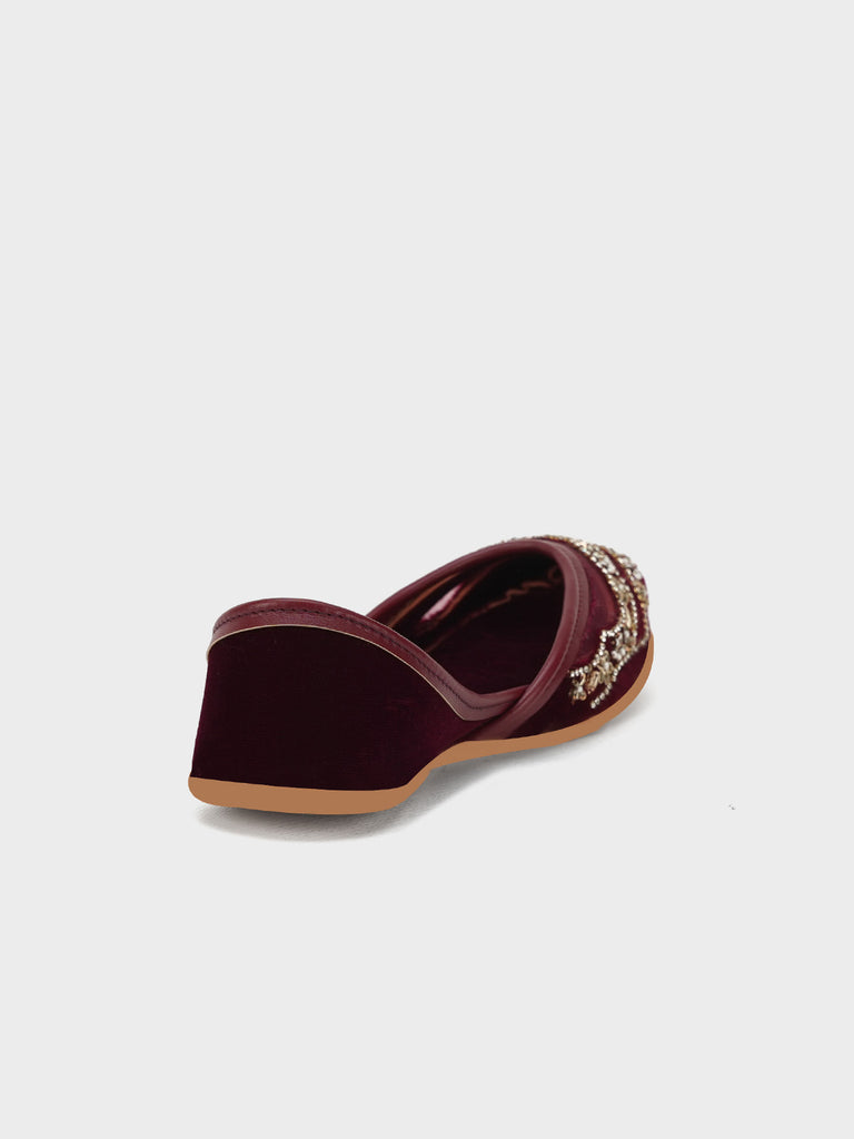 This stylish women’s khussa is adorned with elegant embroidery, blending traditional craftsmanship with modern appeal. Designed for both beauty and comfort, it features soft inner padding and a flexible flat sole, making it perfect for long wear.