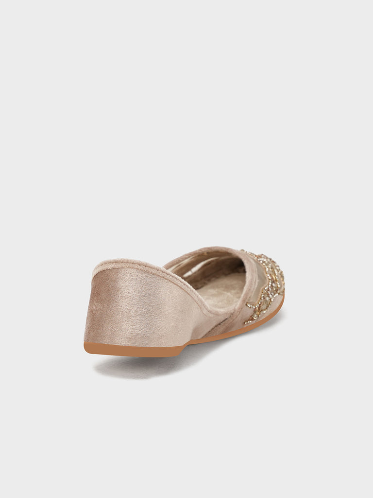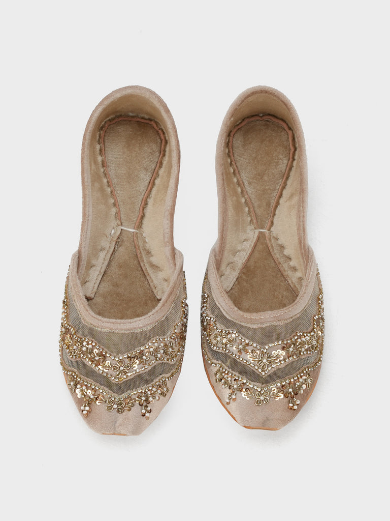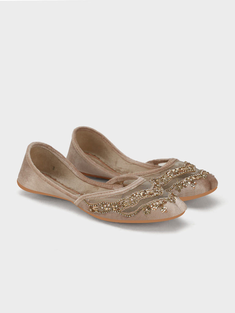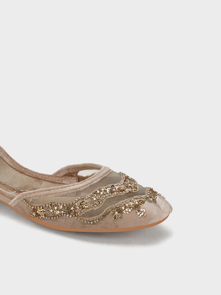 This stylish women’s khussa is adorned with elegant embroidery, blending traditional craftsmanship with modern appeal. Designed for both beauty and comfort, it features soft inner padding and a flexible flat sole, making it perfect for long wear.