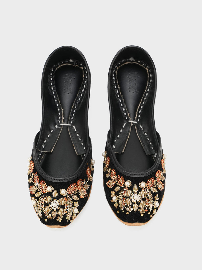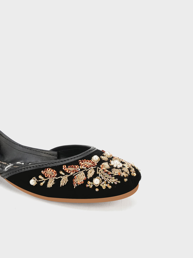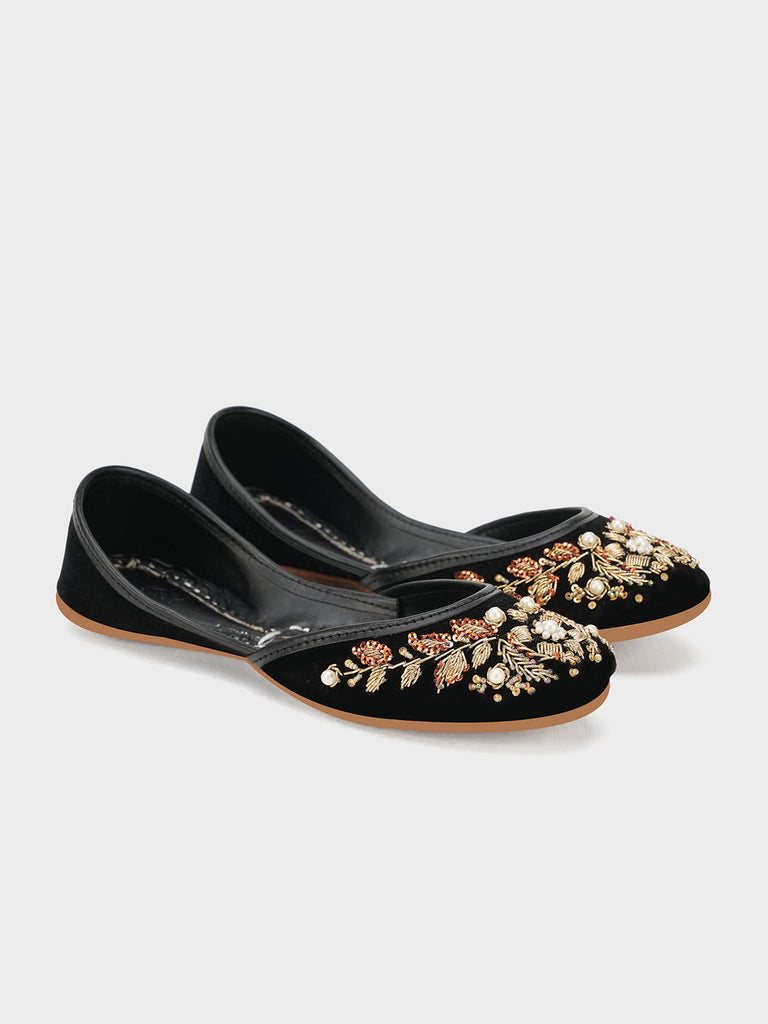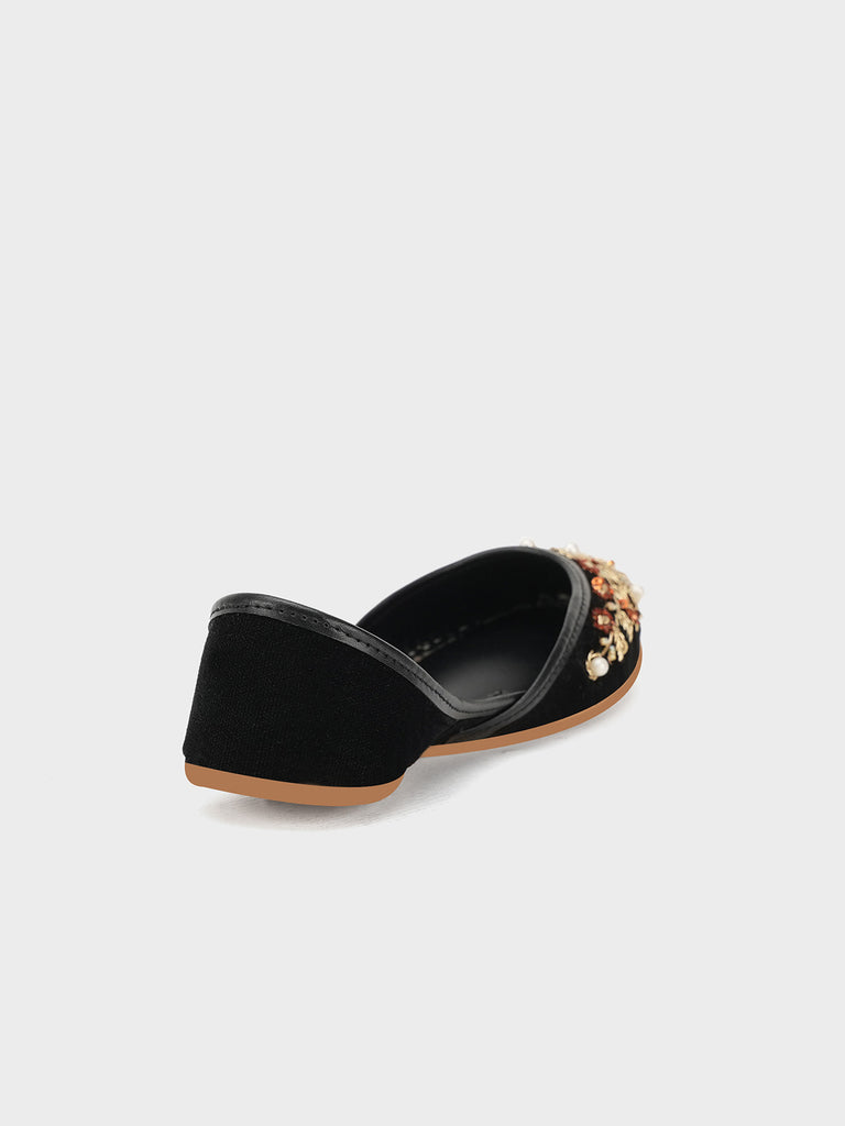 This women’s khussa is beautifully decorated with delicate embroidery, adding a touch of traditional charm to its classic design. Crafted with a soft inner lining and cushioned flat sole, it ensures lasting comfort for everyday wear. Perfect for festive occasions or casual styling.