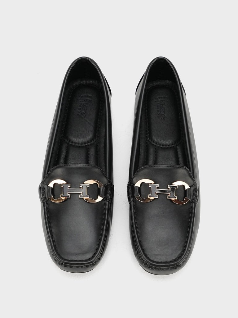 These moccasins feature a sleek design with a stylish metal buckle on the front. Made for all-day comfort, they are soft, easy to wear, and perfect for everyday or office looks. A great mix of elegance and ease.