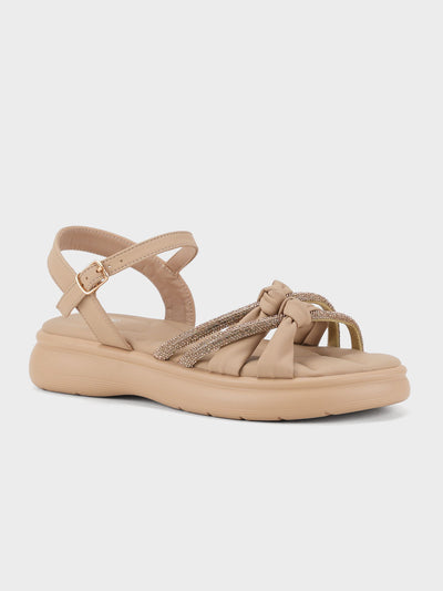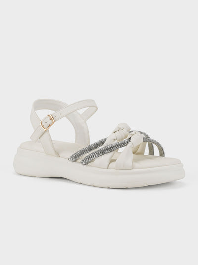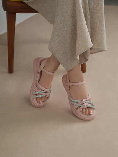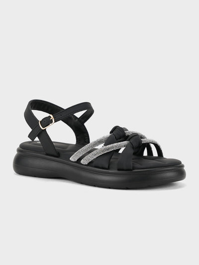 Embrace effortless style with these heeled sandals, designed with a padded PU sole for superior support and ease. Back strap comes with adjutble buckle closure while decortaed upper makes it more stylish.
