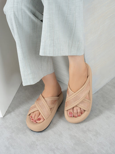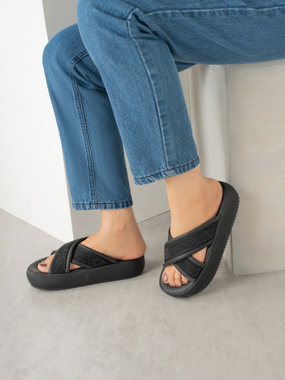 Step into unmatched comfort with these slip-on summer slippers. Designed with a soft padded PU upper and a cushioned sole, they provide effortless support and style for sunny days. Simple cross over design with open toe makes on the go style.