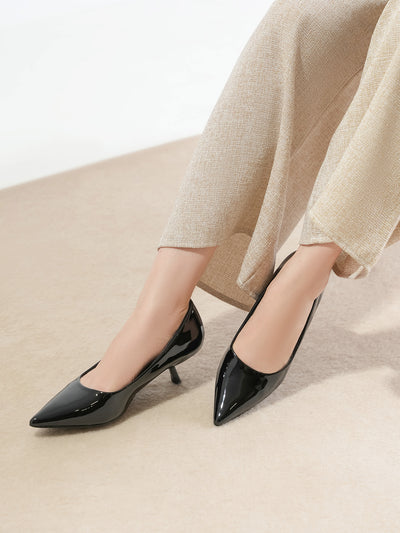 Elegant and comfortable women’s court shoes with a pointed toe and low heel — perfect for office or formal wear.
