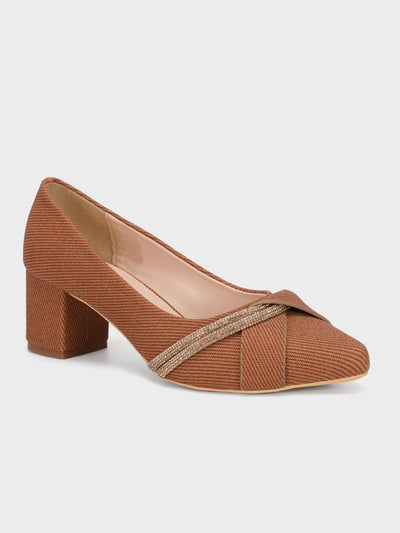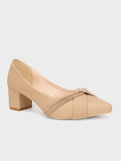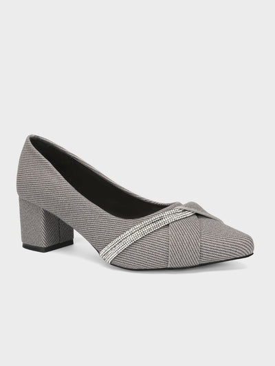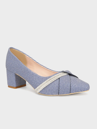 Add elegance to your look with these block heel slip-on court shoes, adorned with delicate diamante detailing. The low heel and classic design make them a versatile choice for any occasion.
