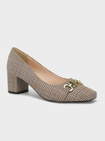 Make a statement with these block heel slip-on court shoes, featuring a stunning embellished design. The sturdy heel and elegant detailing add a touch of sophistication to any outfit.