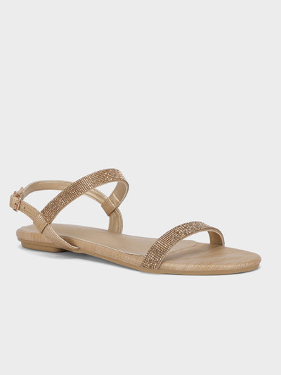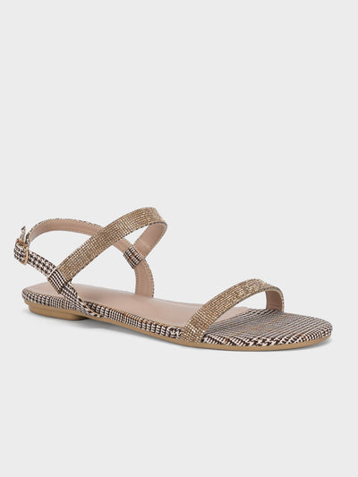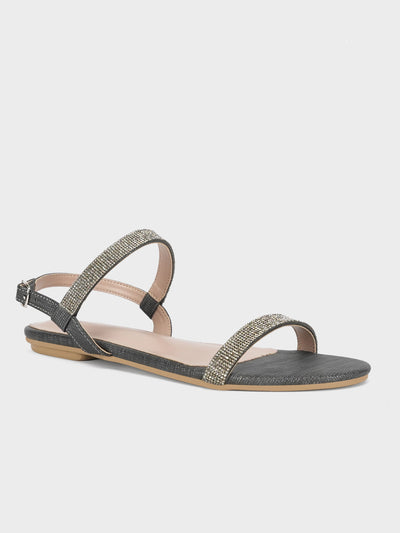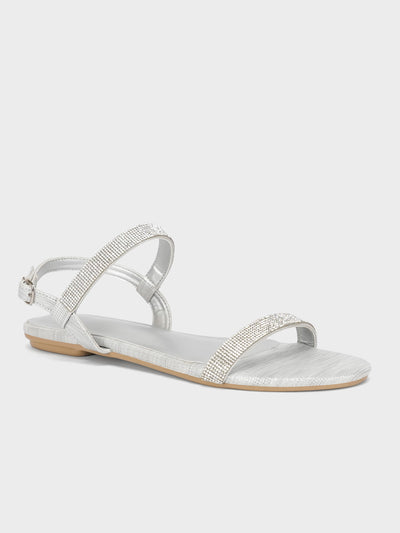 Experience a day of pure relaxation and luxury with these stylish embellished sandals. The contemporary design is enhanced by sparkling details on the upper, adding a touch of sophistication to any outfit. With a back strap and adjustable buckle closure, these sandals ensure a secure and customized fit. Step into effortless elegance and comfort with each stride in these fashionable sandals.