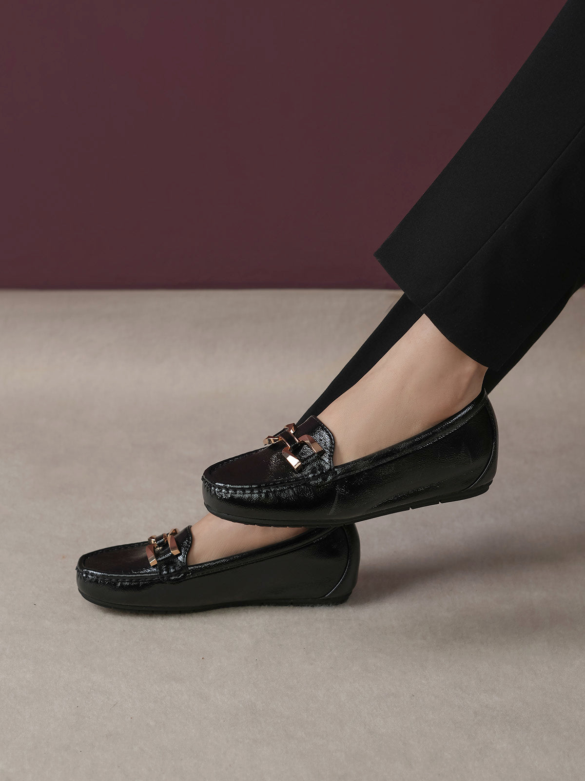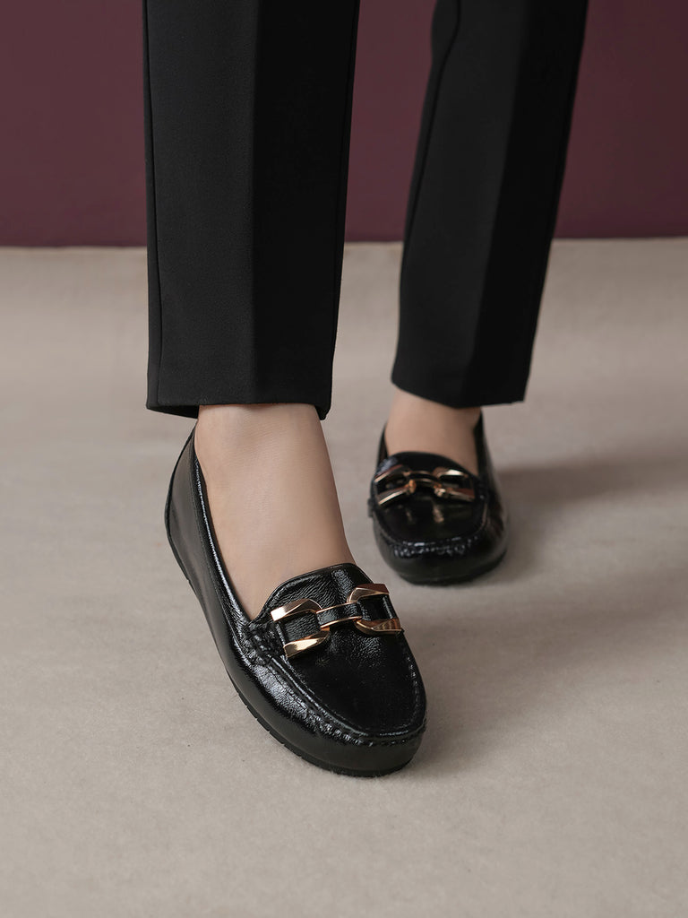 These moccasins feature a medium heel for just the right lift and a classy buckle detail on top. Designed for everyday comfort with a modern touch, they are perfect for work, casual outings, or stylish daily wear. Easy to slip on and always in style.