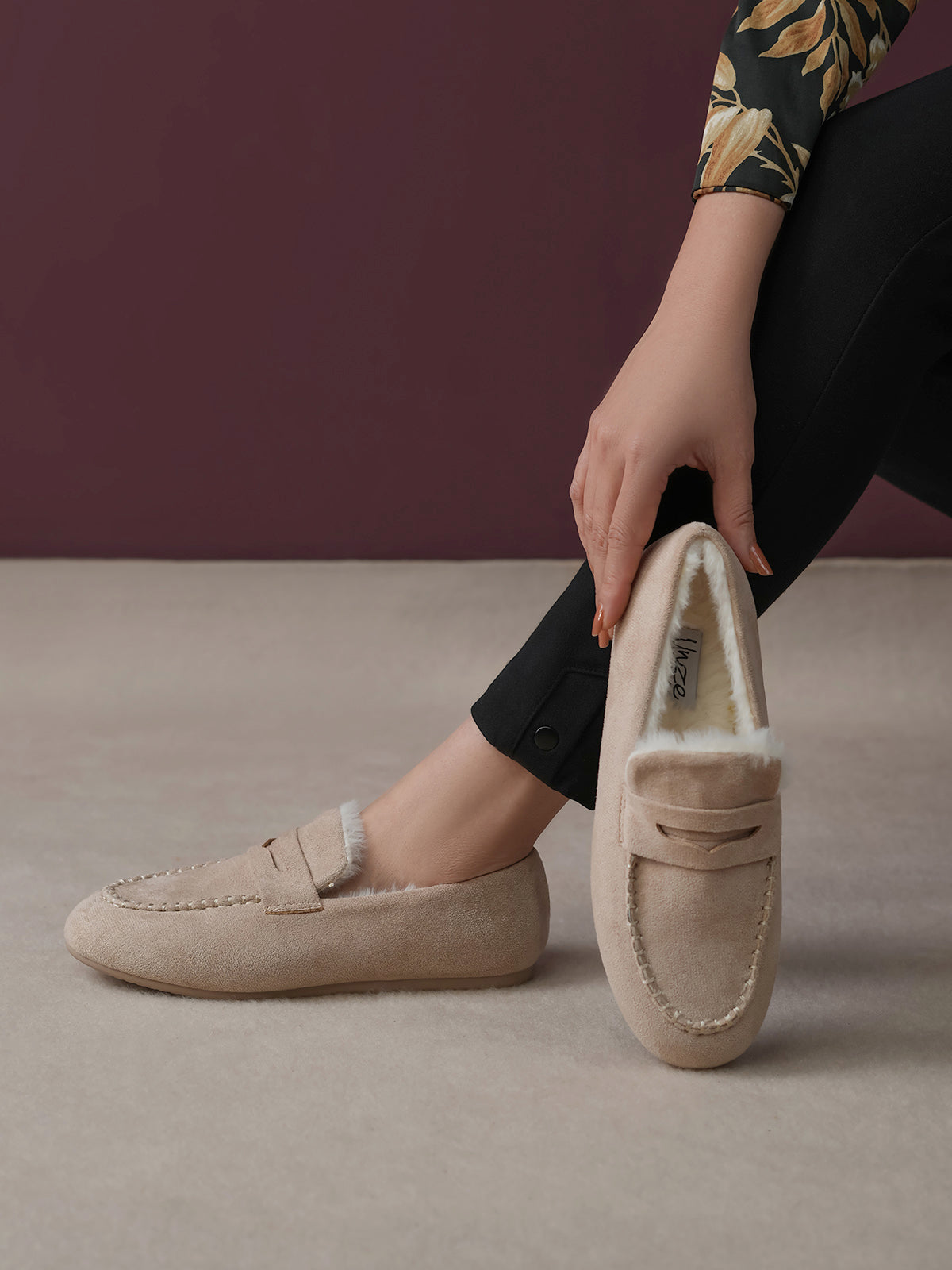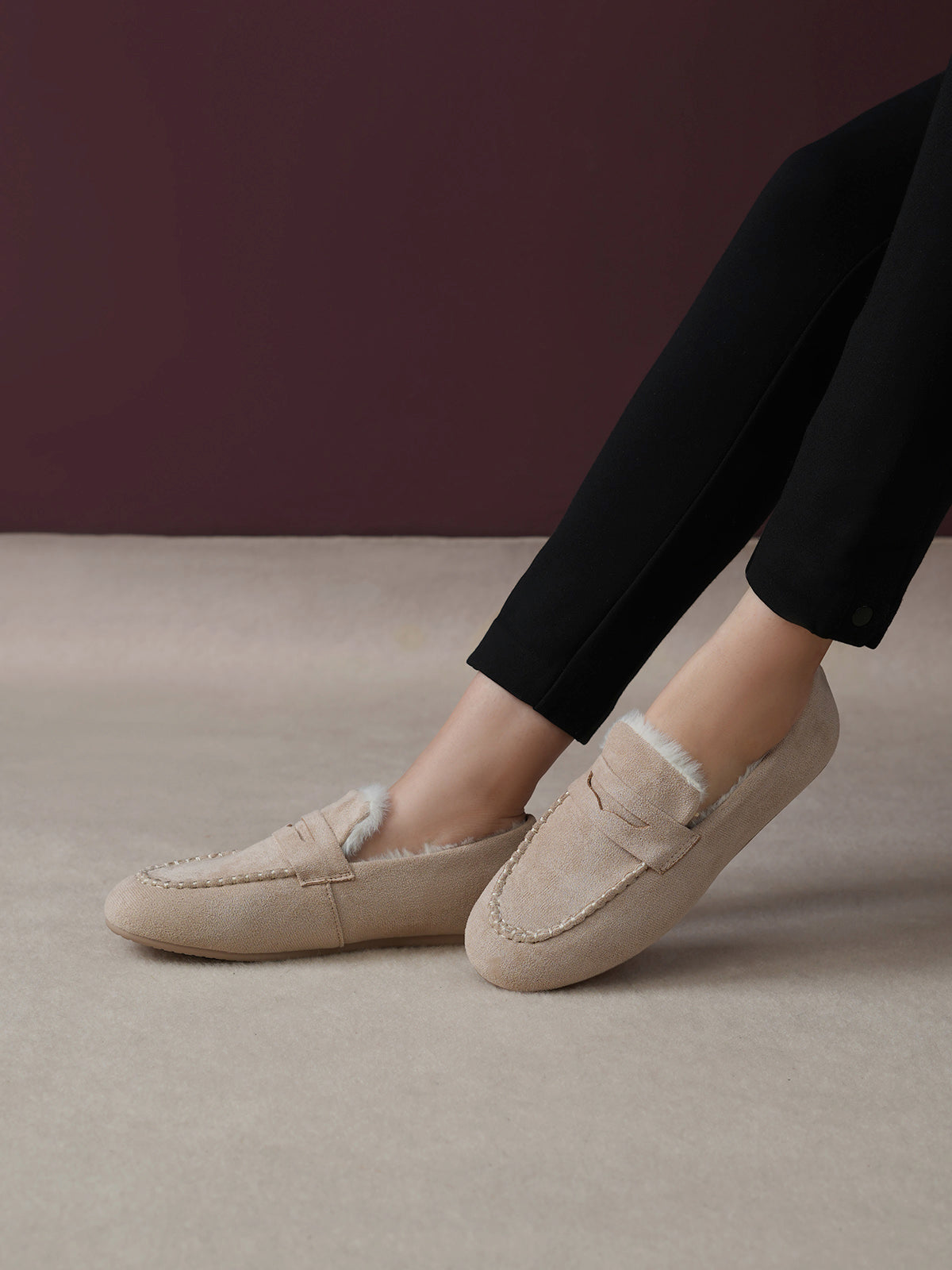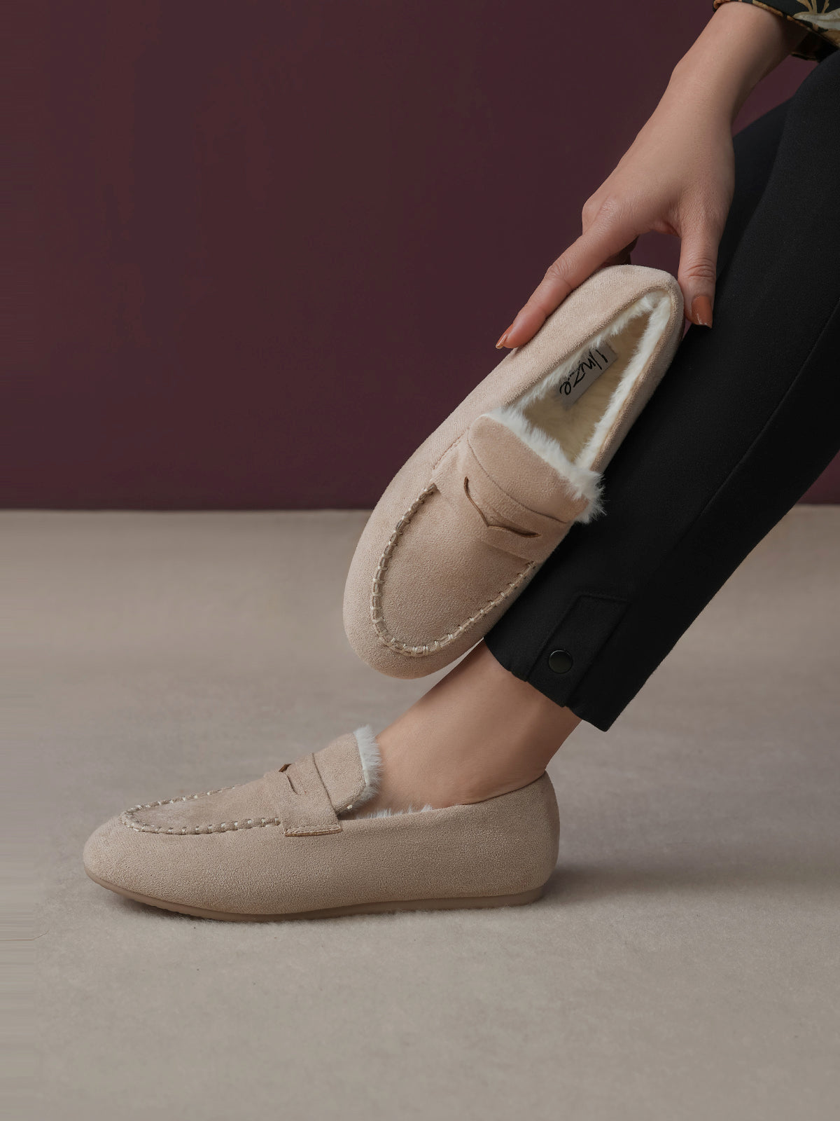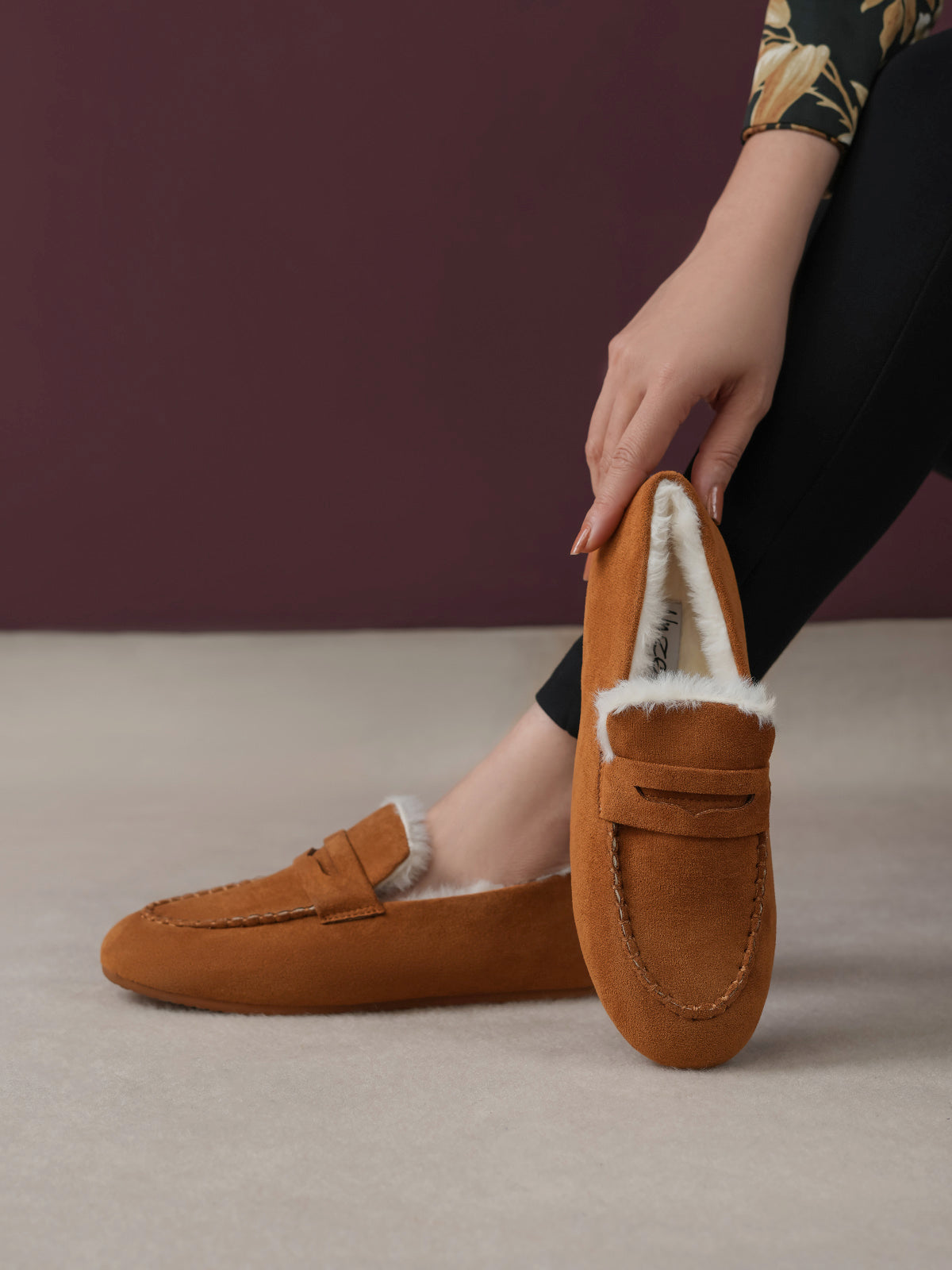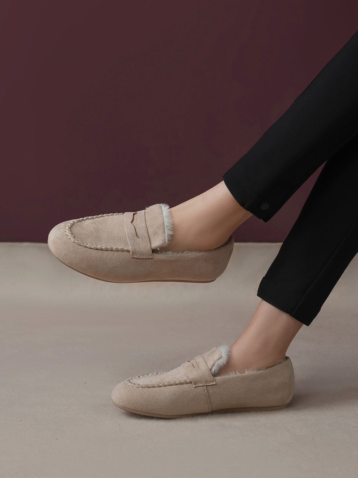 Stay warm and stylish with these fabric ballerinas featuring a soft fur design. Made for comfort, they offer a cozy feel and easy slip-on style — perfect for chilly days or relaxing indoors. A perfect blend of softness, warmth, and everyday ease.