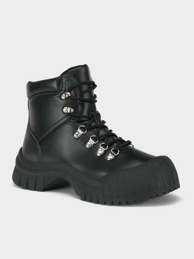Step up your fashion game with these ankle boots featuring mettalic loop buckles. The traditional lace-up design with soft textile lining ensures breathability. A lightly cushioned footbed provides all-day comfort, and the low block heel adds a sophisticated finish. The aggressive tread pattern on the sole enhances grip and elevates your overall look.
