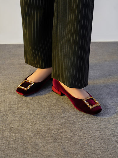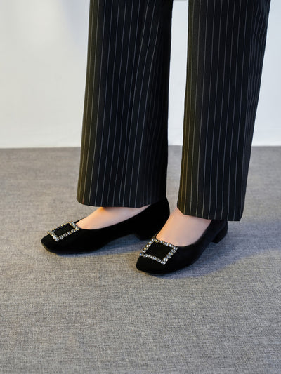 Elevate your everyday look with these square toe-style flat slip-on pumps, featuring a chic decorative buckle on the front. The sleek design and comfortable fit make them a versatile choice for work or weekend wear, while the subtle embellishment adds a sophisticated touch to the classic silhouette.