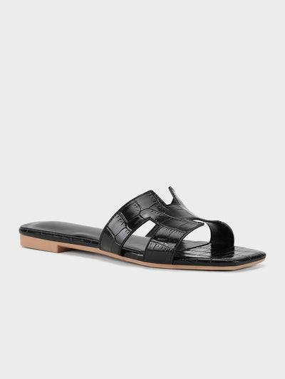 Step into effortless style with these sleek black slip on flats, featuring a chic crocodile textured finish and a comfortable square toe design. Perfect for casual outings or polished everyday looks.