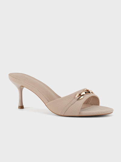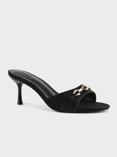 Step into sophistication with buckled adorned open-toe sandals, designed with slender pencil heels to elevate your party attire effortlessly.