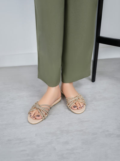 Add a touch of glamour to your everyday look with these flat summer slippers, decorated with delicate stone accents. Comfortable and chic, they're perfect for casual outings or relaxed evenings.