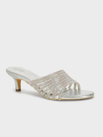 Add a touch of sparkle to your wardrobe with these diamante-encrusted slip-on kitten heel shoes. Designed for both comfort and glamour, the shimmering upper pairs perfectly with the sleek kitten heel, making them ideal for elevating any outfit with effortless elegance.