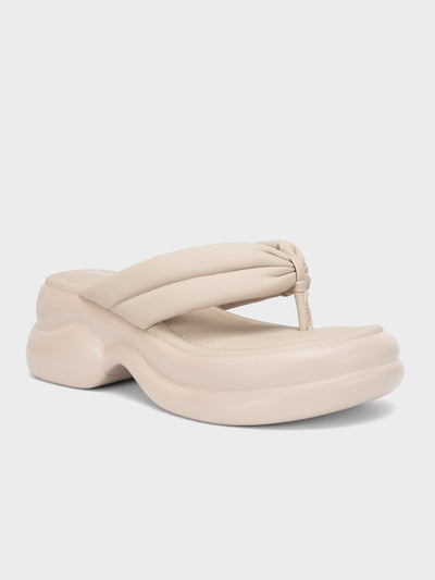 Step into summer with our chic PU platform thong slippers. Crafted with a smooth PU upper and a soft, breathable lining, these slippers provide exceptional comfort and durability. The platform sole offers added elevation and cushioned support, making them perfect for strolls or casual get-togethers. Enjoy effortless style and comfort all season long with these versatile slippers.