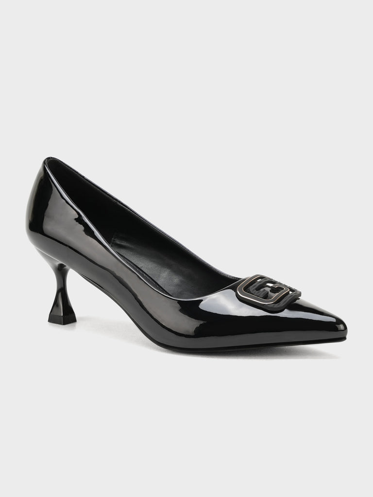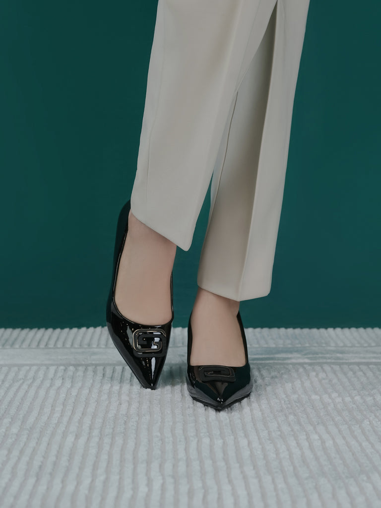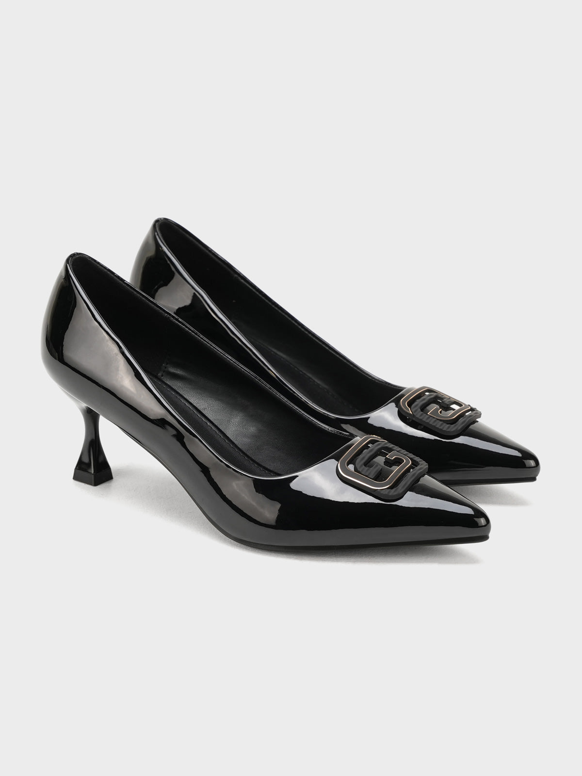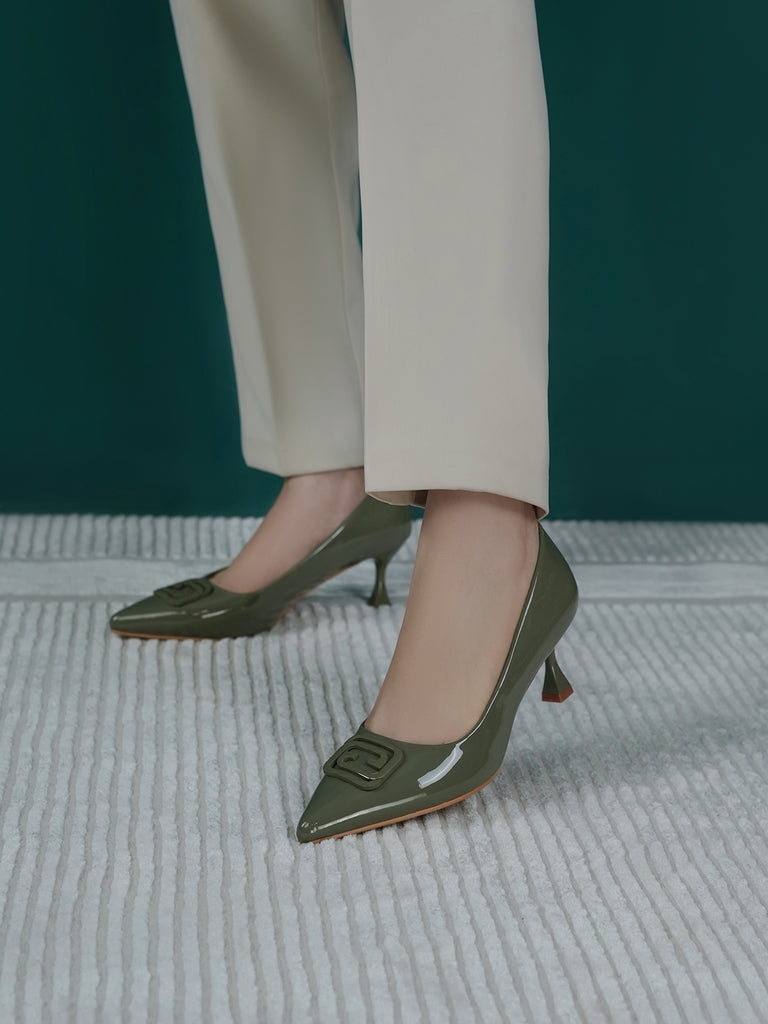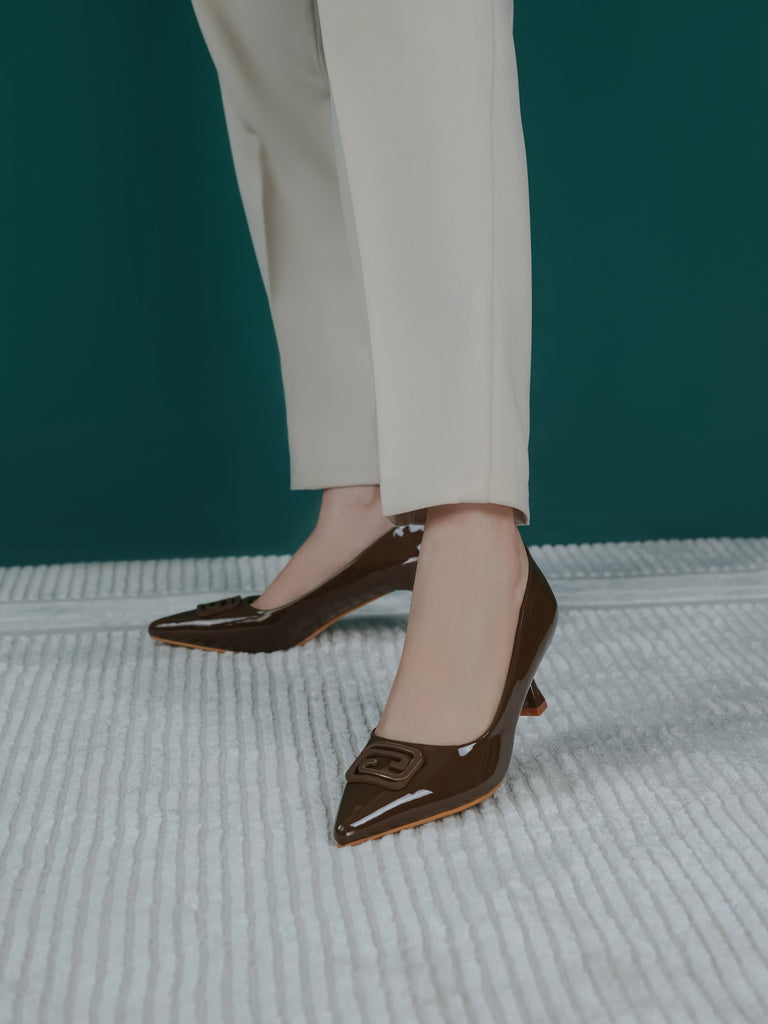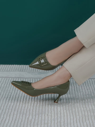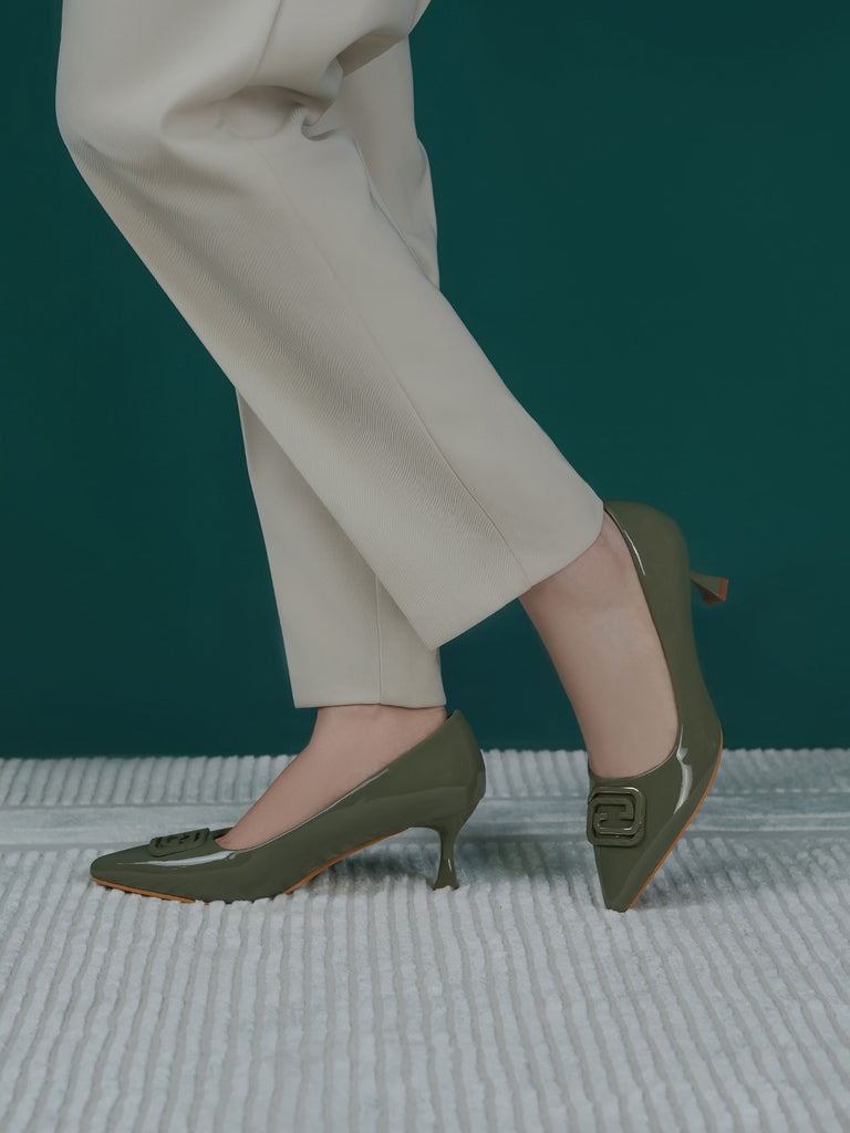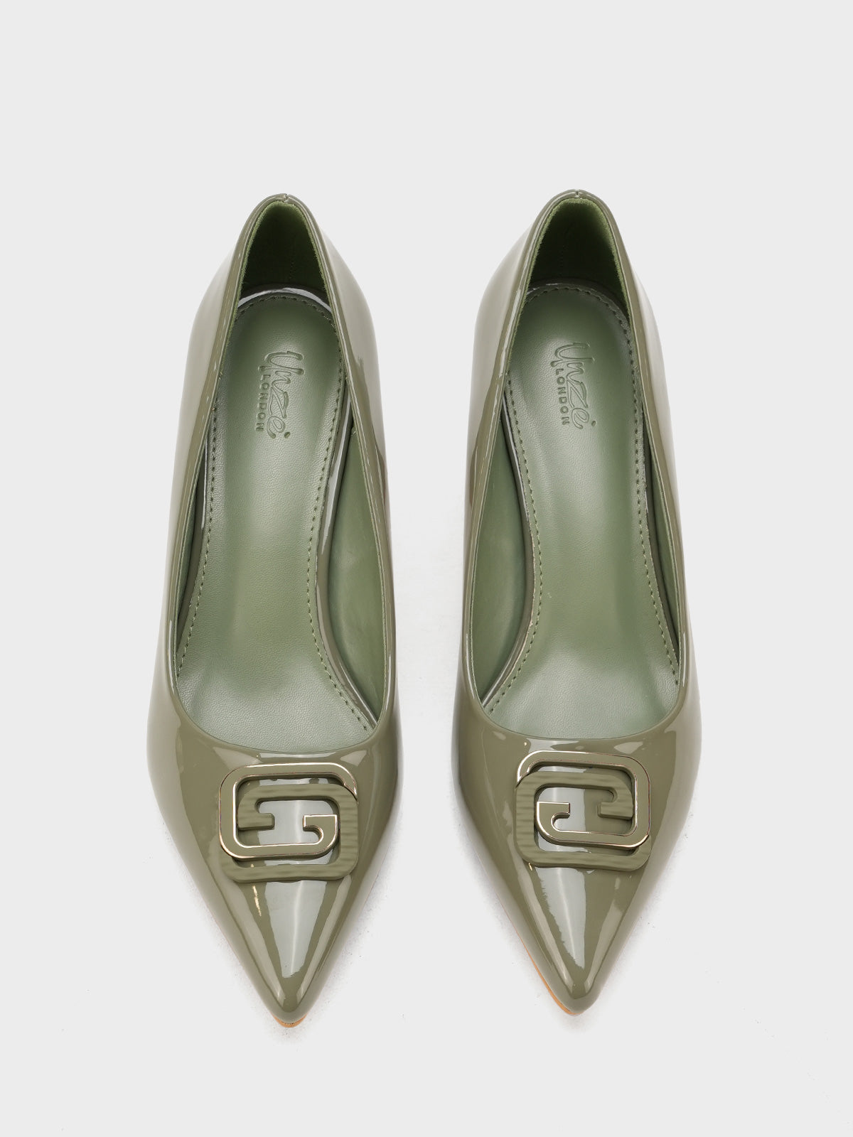 Step into elegance with these women’s court shoes featuring a pointed toe and a stylish upper buckle. The sleek silhouette adds a touch of sophistication, while the decorative buckle detail enhances the overall charm. Perfect for office wear.