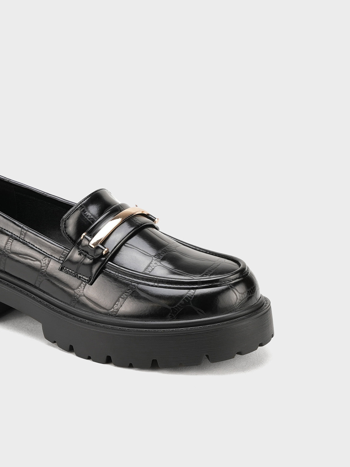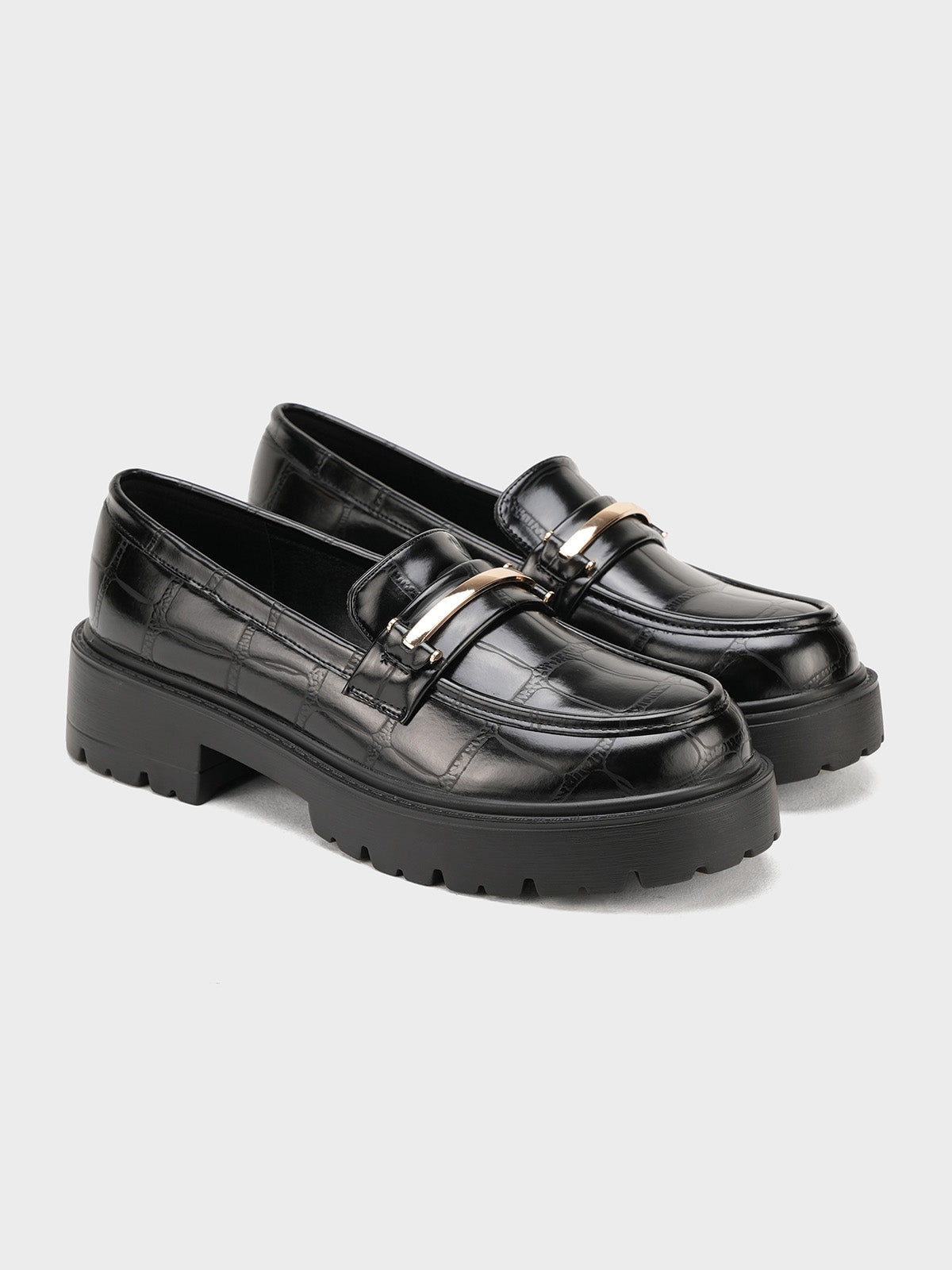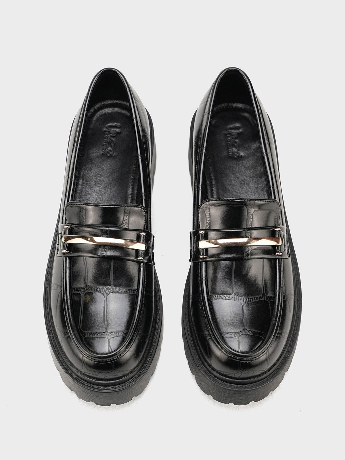 These classy moccasins feature a chic croc-textured finish with a shiny gold buckle detail. Designed for both comfort and style, they are perfect for work or casual wear. The slip-on design makes them easy to wear, while the soft sole ensures all-day comfort.